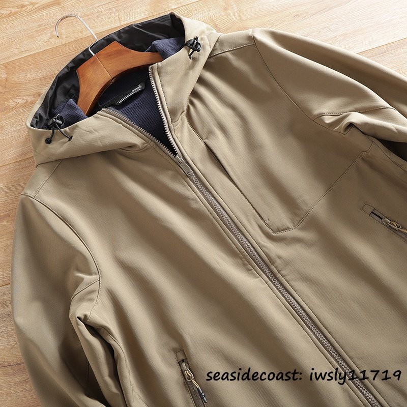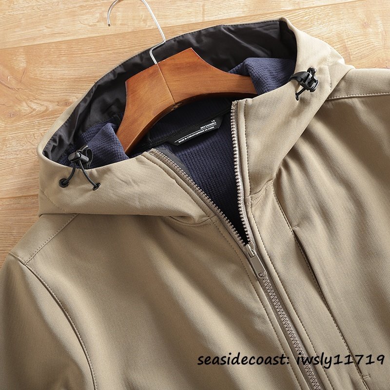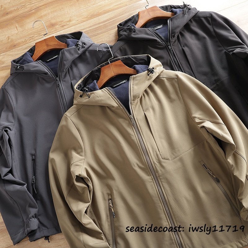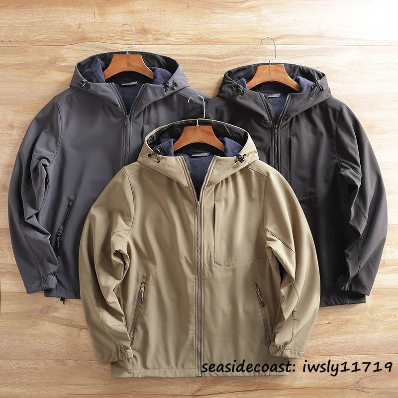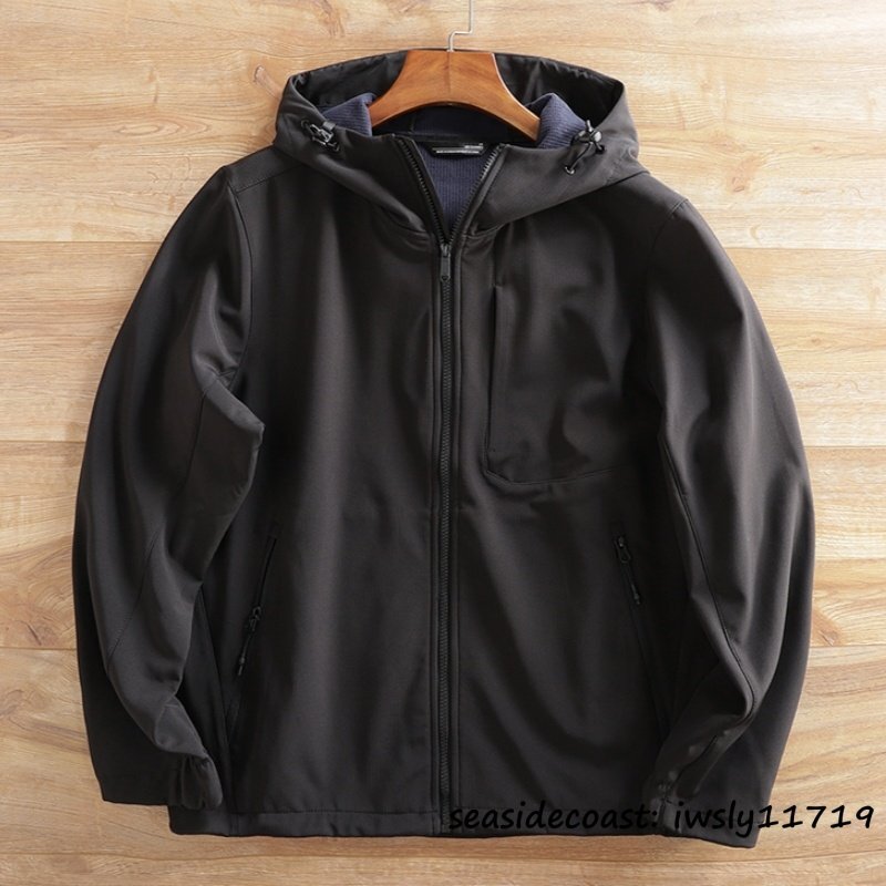 メンズ ソフトシェル ジャケット フード付き フリースジャケット 厚手 無地 防風防寒 撥水 ストレッチ アウトドア カジュアル ブラック 4XL