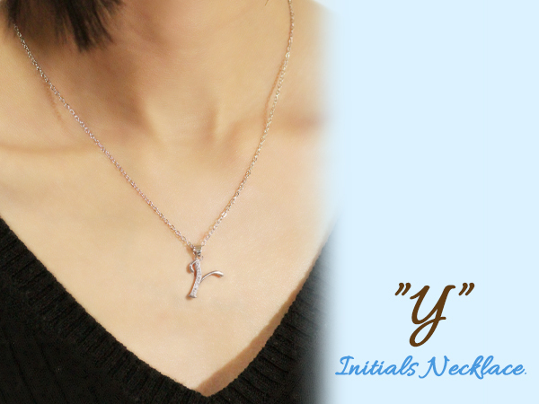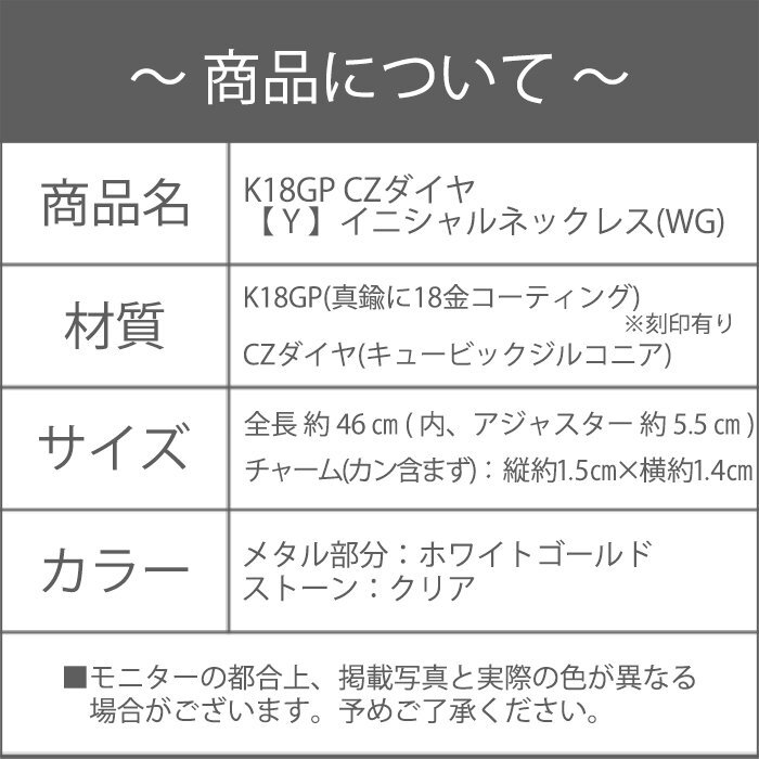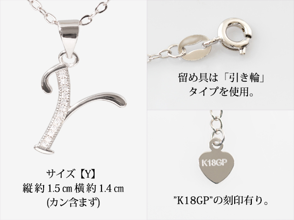 Y イニシャル ネックレス レディース シルバー 18金 18kコーティング ホワイトゴールド 英語/ K18GP CZダイヤ 【 Y 】イニシャルネックレス