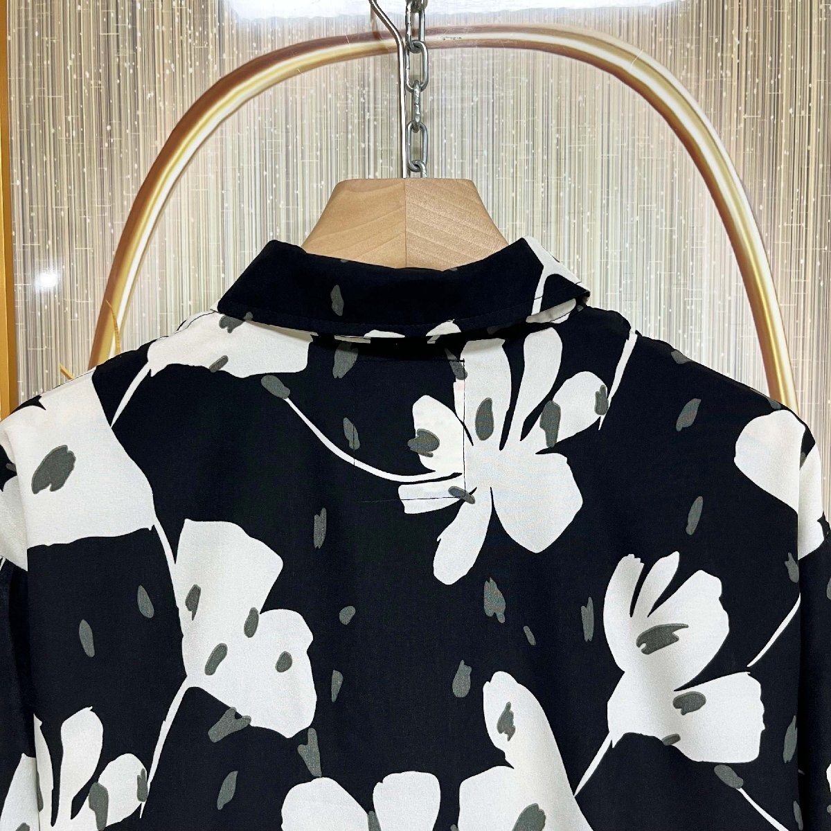 繊細で華やかな花柄プリントが目を引き、シンプルながらも存在感のあるデザインで上品な印象を演出。軽やかで通気性の良い生地は、汗ばむ季節も快適に過ごせます。