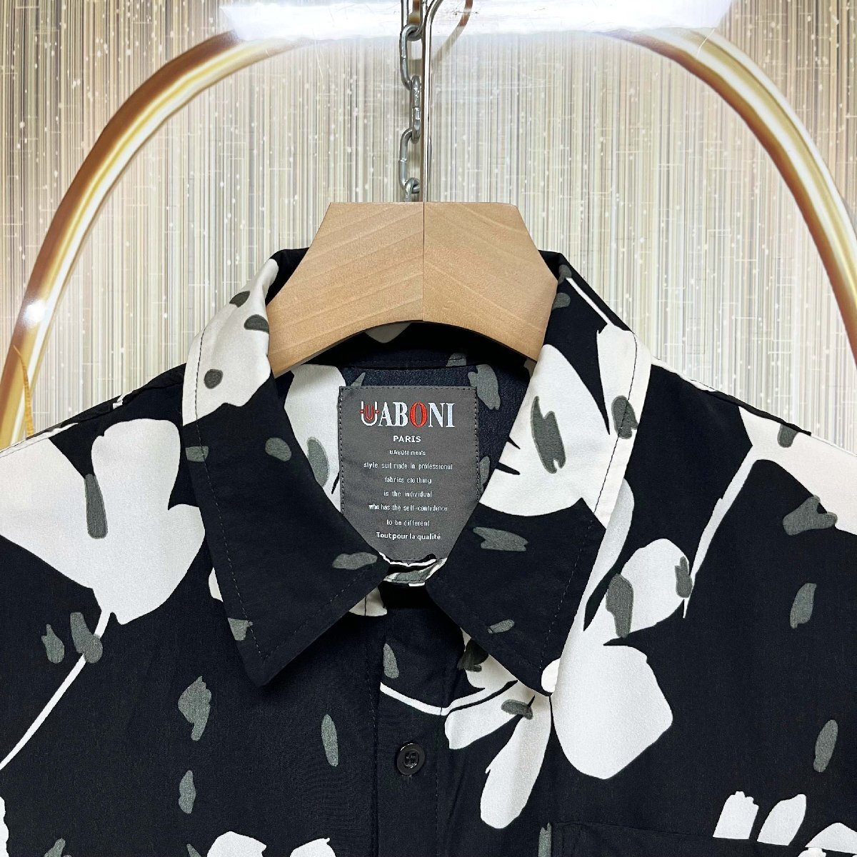 高級EU製&定価7万◆UABONI*Paris*長袖シャツ*ユアボニ*パリ発◆シルク混 快適 柔らかい 花柄 ゆったり 開襟シャツ カジュアル リゾート 秋 M/46サイズ