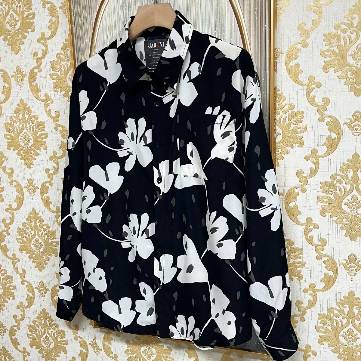 高級EU製&定価7万◆UABONI*Paris*長袖シャツ*ユアボニ*パリ発◆シルク混 柔らかい 花柄 ゆったり 開襟シャツ カジュアル リゾート 秋 M/46