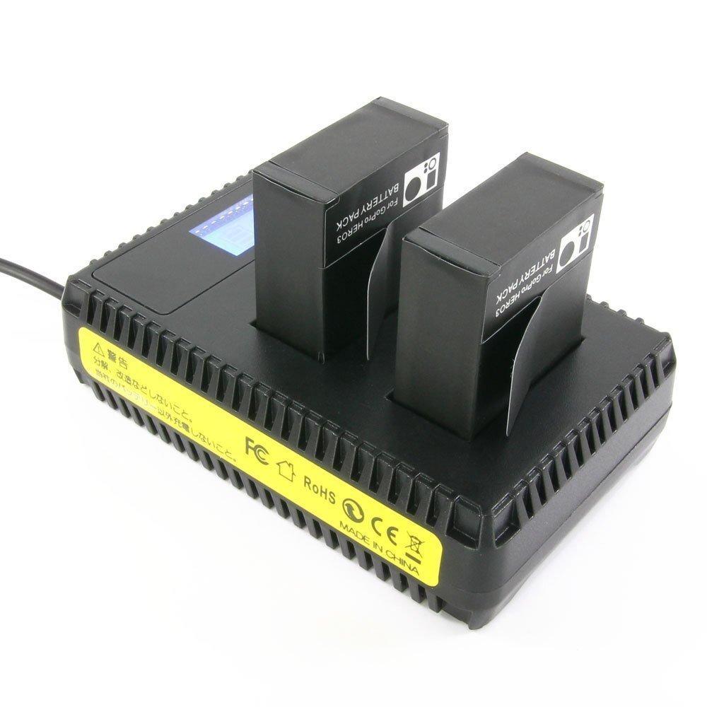 GoPro HERO3 HERO3+用 USB デュアルチャージャー バッテリー充電器 互換 AHDBT-201 AHDBT-301/302 充電池 ディスプレイ内蔵