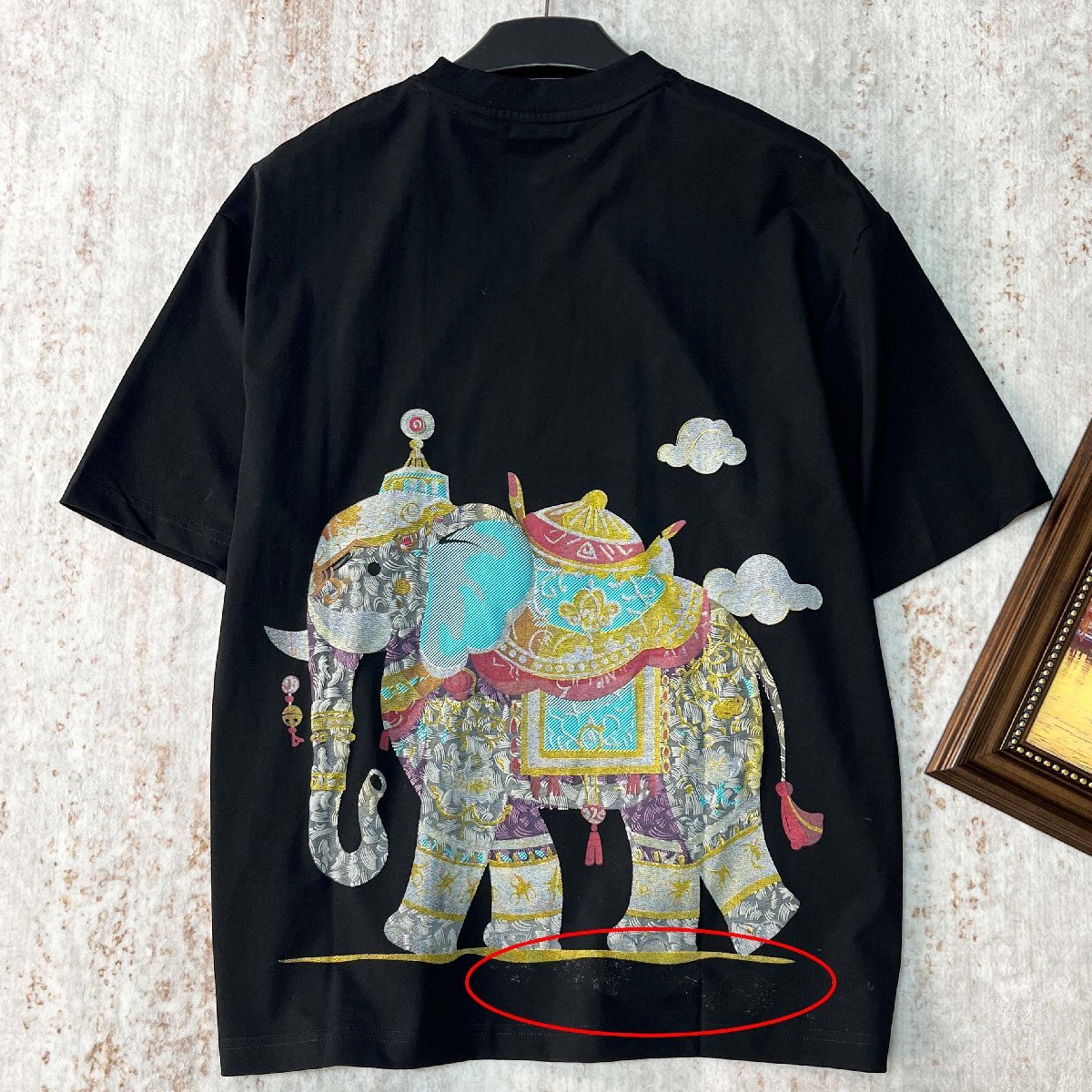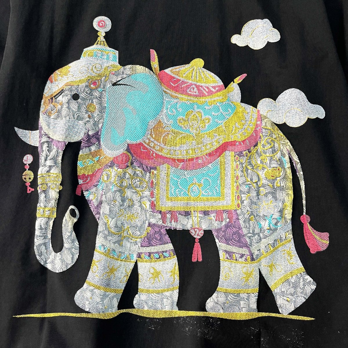 一枚限定 半袖Tシャツ ロンドン製造 綿100% 快適 通気 ゆったり 個性 刺繍 ゾウ柄 民族風 おしゃれ カジュアル トップス デイリー 夏SIZE:L