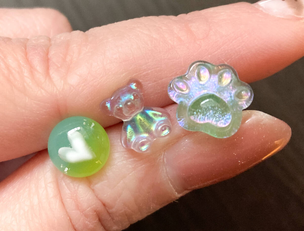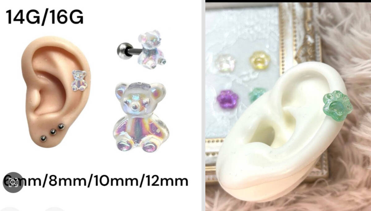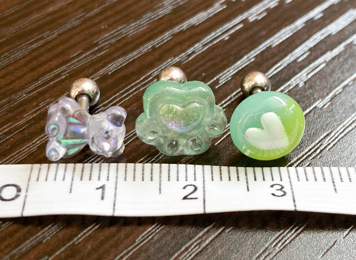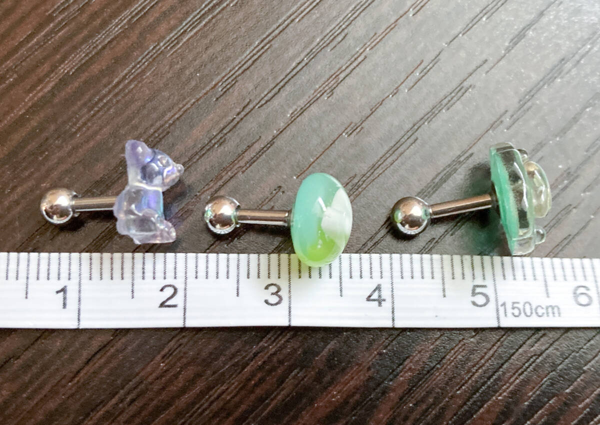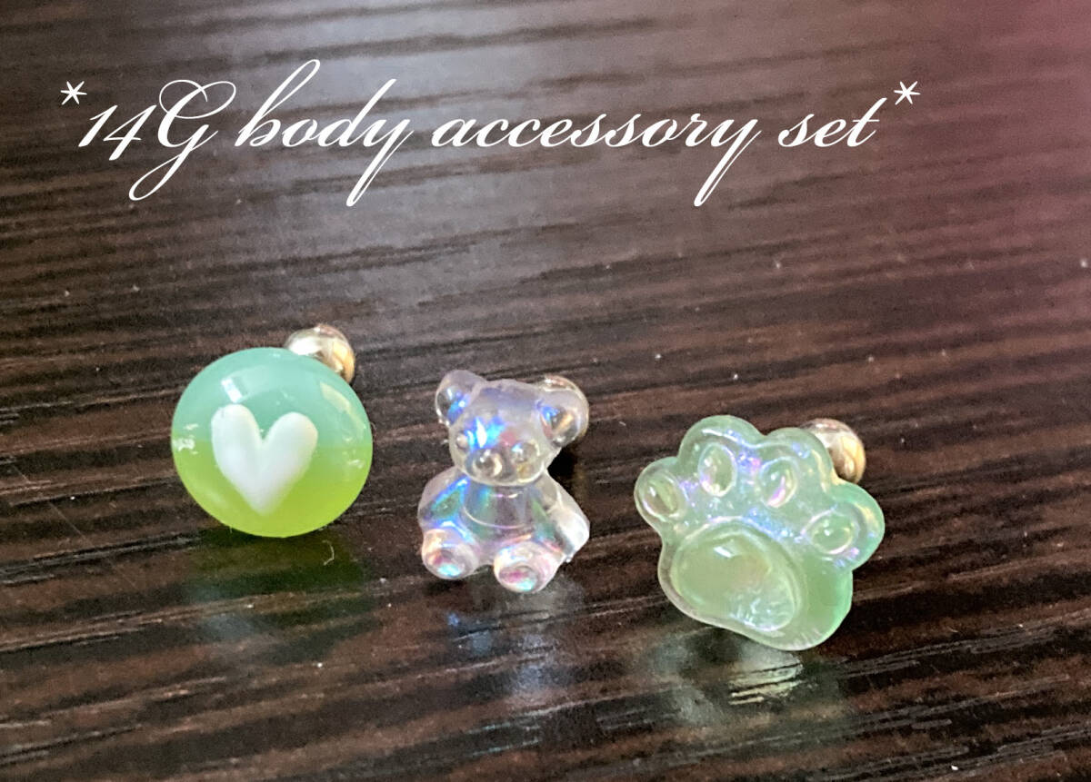 新品 14G ボディピアス 3個セット 6mm シャフト グミベア 肉球 ハート キャンディ オーロラ グリーン