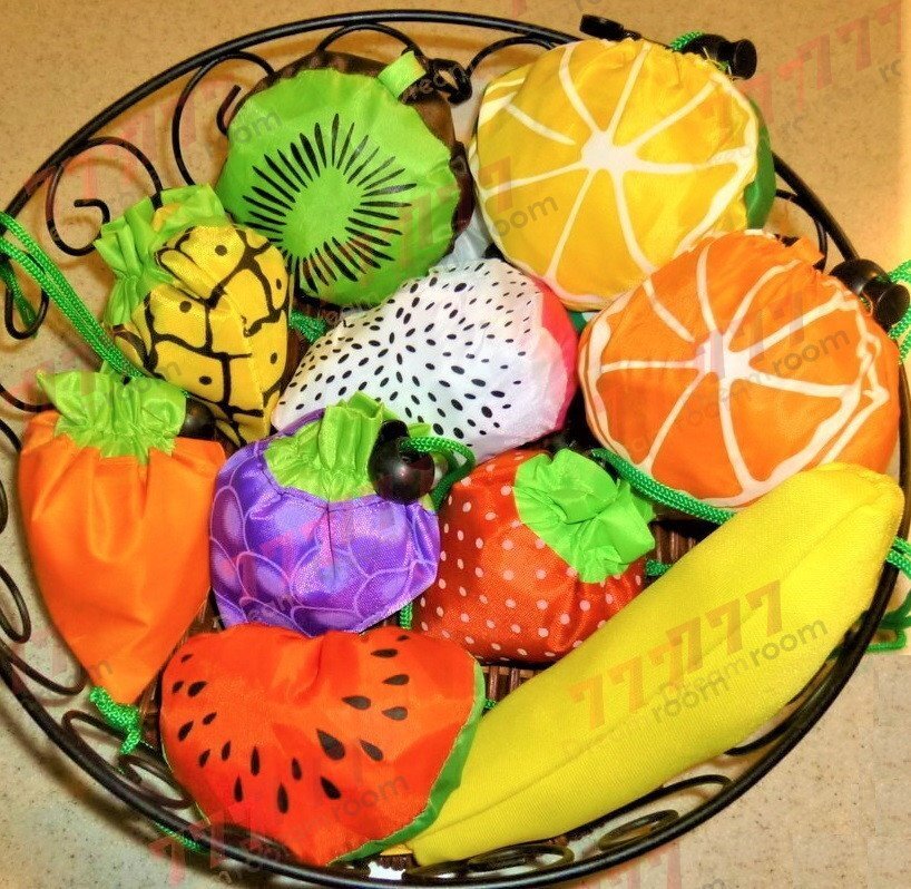 可愛いフルーツのデザイン 5個setアソート ショッピングバッグ F-219 トートバッグ エコバッグ コンビニ袋 折りたたみ