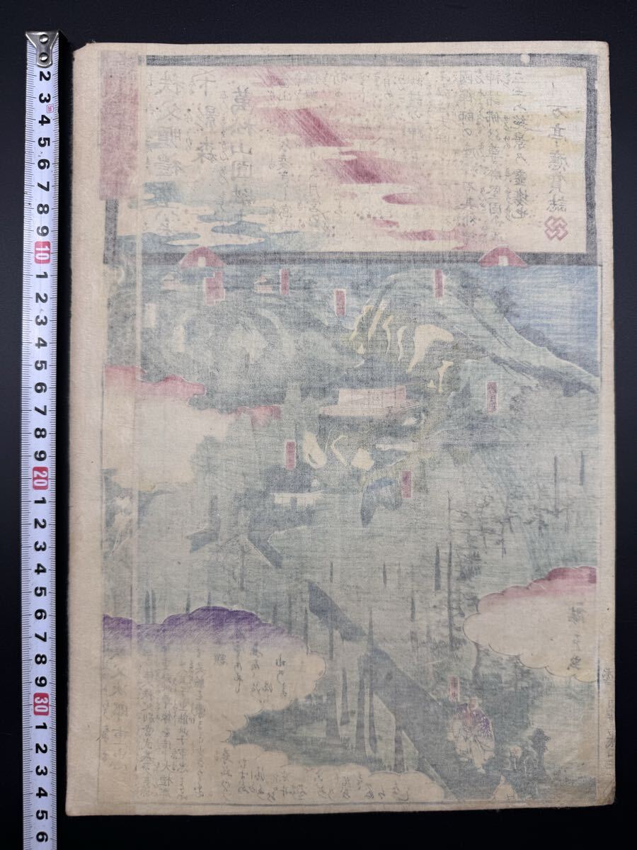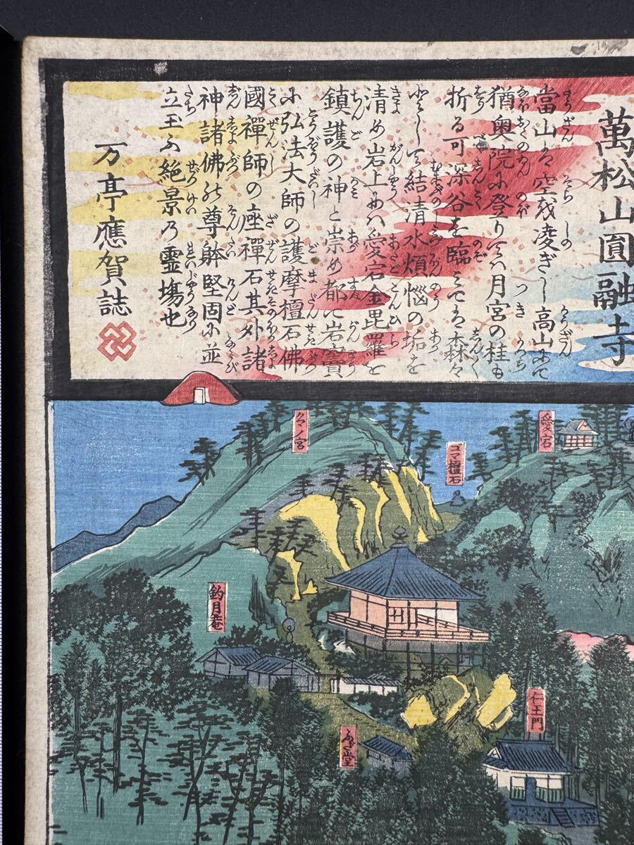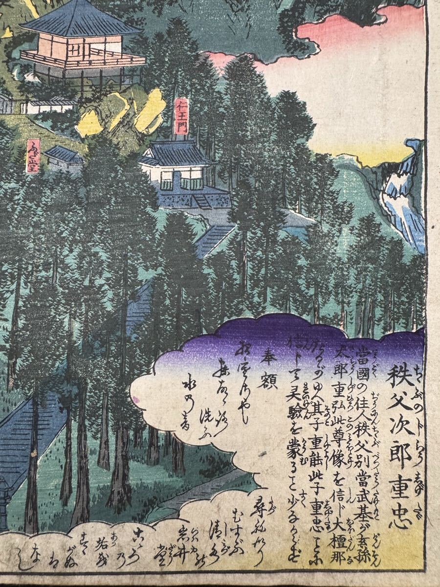【真作】本物浮世絵木版画 三代歌川豊国/二代歌川広重「観音霊験記 秩父順礼 萬松山円融寺」江戸期 名所絵 大判 錦絵 保存良い 裏打ち