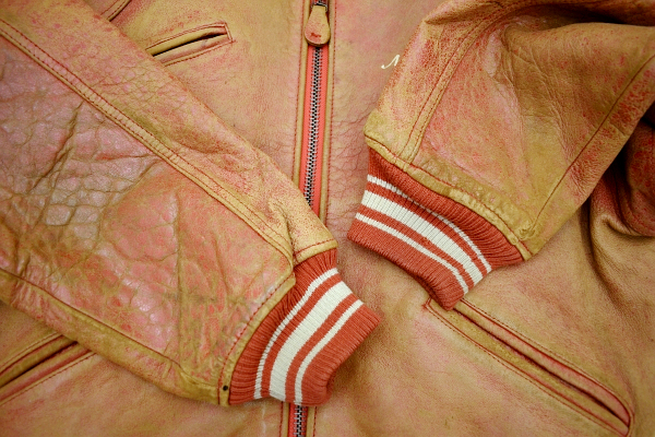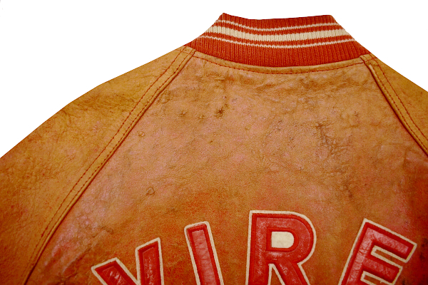 全体にヴィンテージ加工が施された本革レザースタジアムジャンパーになります。