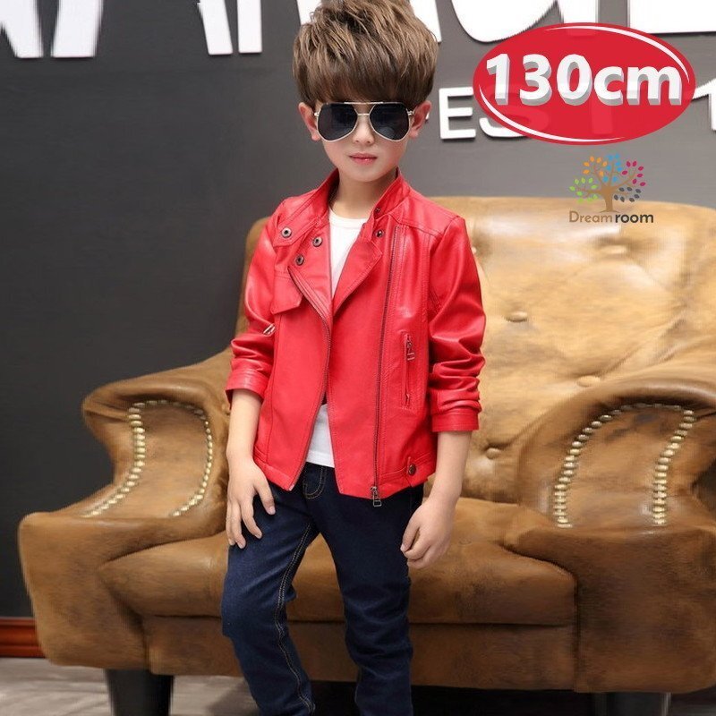 1スタ☆kids boy 2way ライダースジャケット 【レッド 130cm】 韓国子供服 レザー ハード ライトアウター K-265