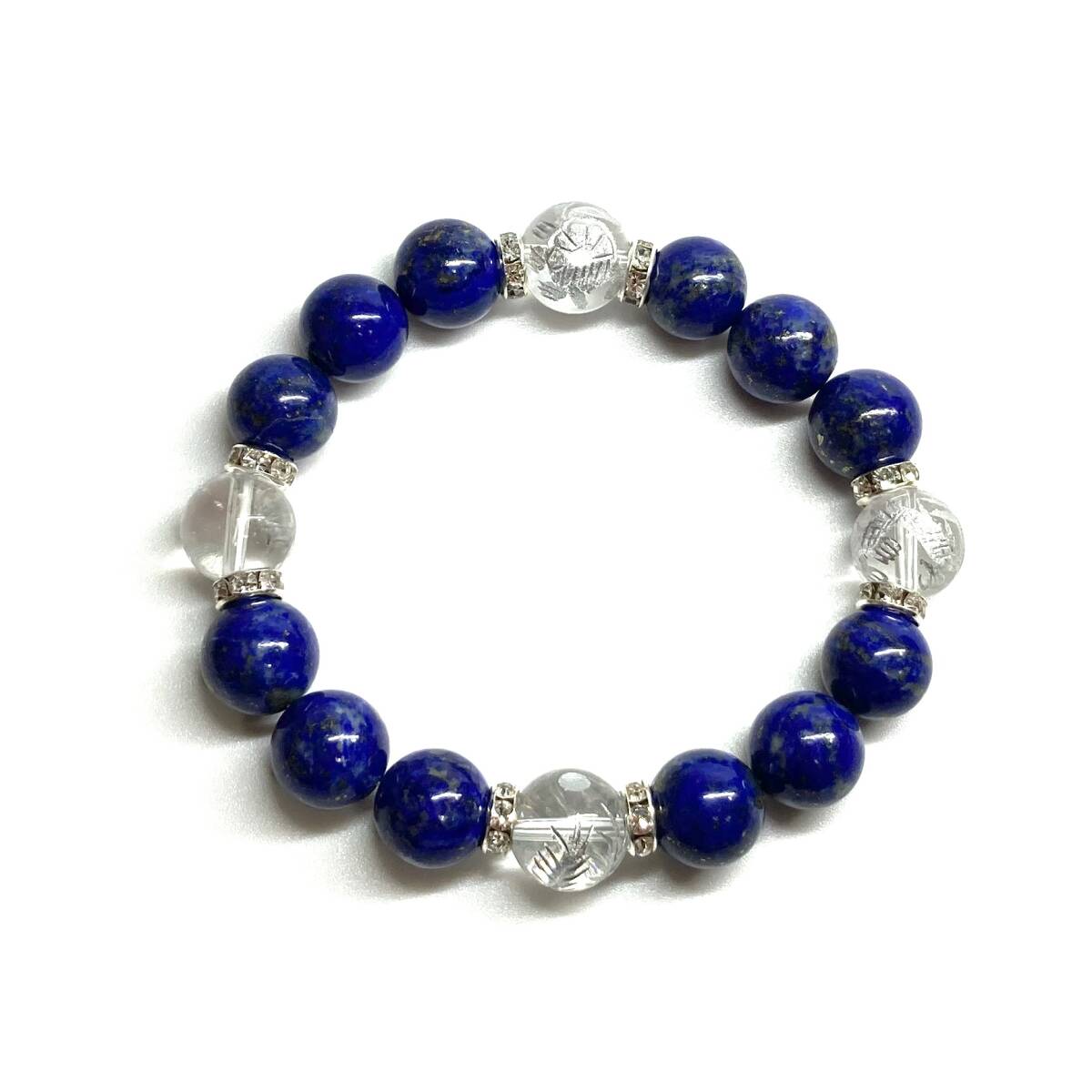 四神獣銀彫水晶×ラピスラズリ 12mm パワーストーン ブレスレット天然石 青龍 白虎 玄武 朱雀 運気上昇 金運 健康運 お守り 四神相応 S
