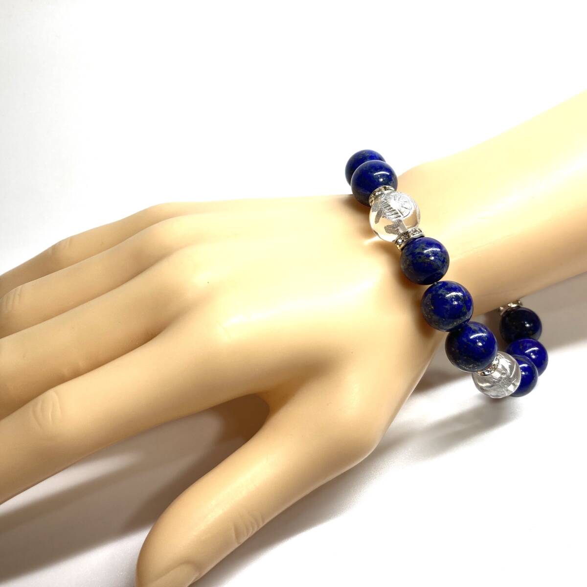 こちらは、四神獣銀彫水晶とラピスラズリを組み合わせたパワーストーンブレスレットです。四神獣は、中国の伝説で4つの方向(東西南北)を守護する神聖な神。四神獣、厄災から身を守り、多くの運気を呼び込むと言われております。石大きさは程よくインパクトのある12mm玉で内周 約17cmです。 数に限りがございますので気になる方はお早めにどうぞ。