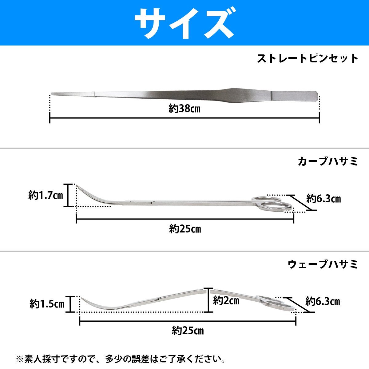 3点セット 『250mm 25cm ハサミ 2種類 & 380㎜ 38cm ピンセット ストレート 』 水槽 水草トリミングキット