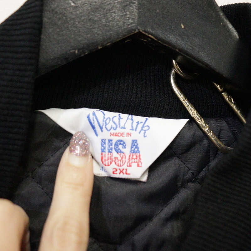 商品名 y749 80sビンテージ WESTARK ブルゾンジャケット USA製■1980年代製 表記2XLサイズ 黒 ブラック 中綿 刺繍 アメカジ 古着 古着卸 激安