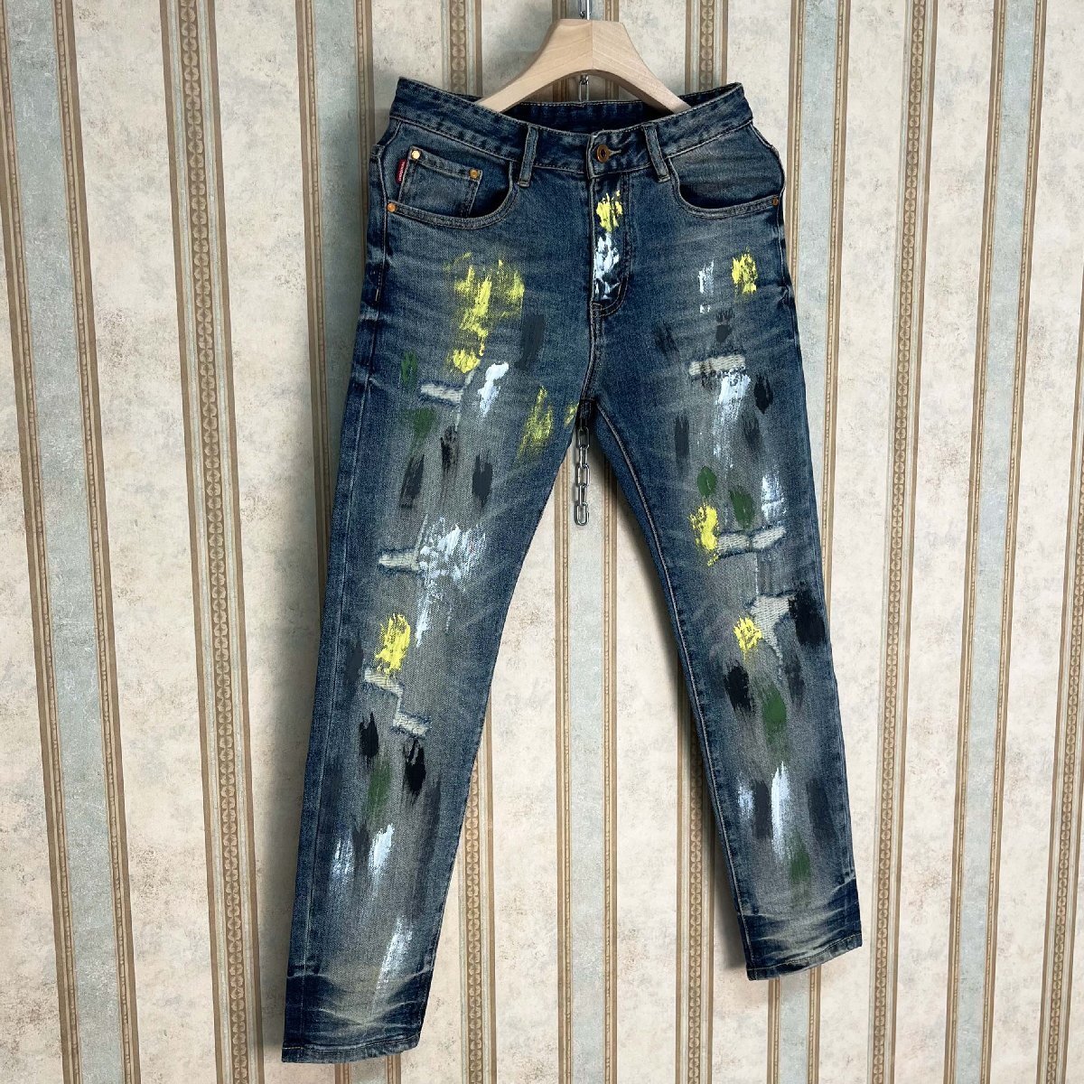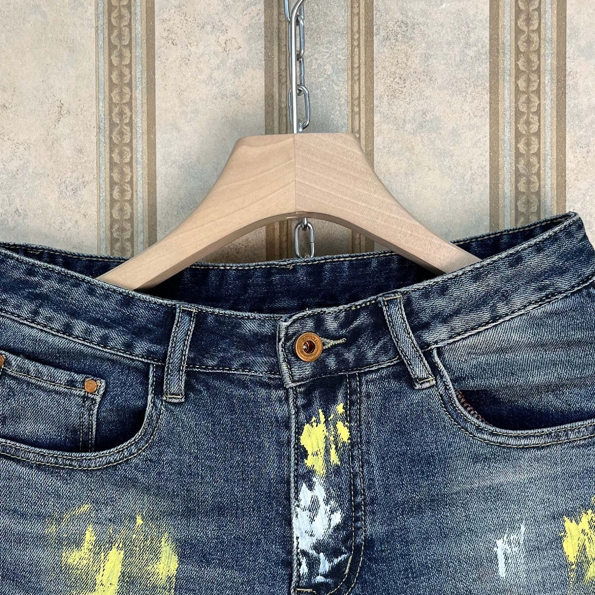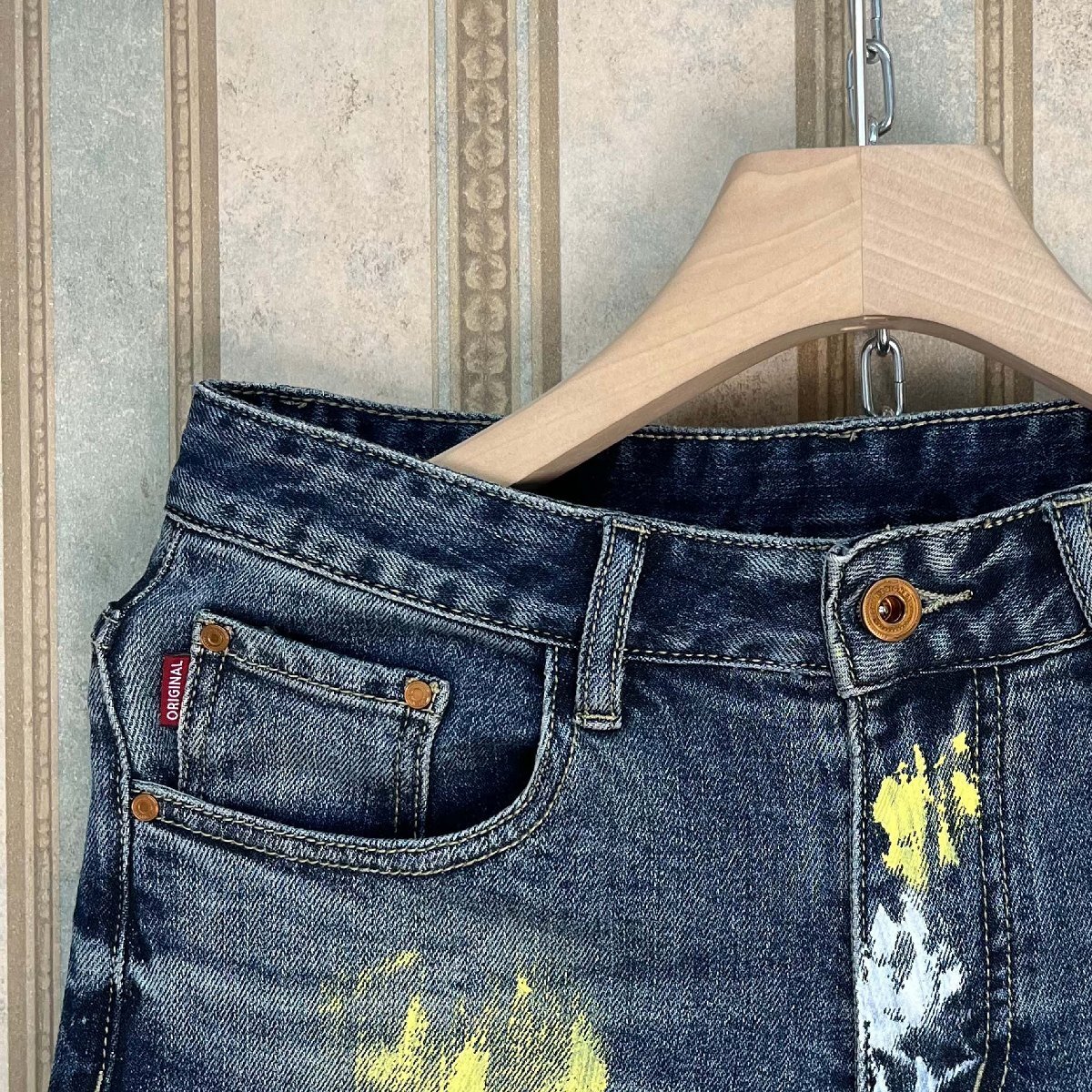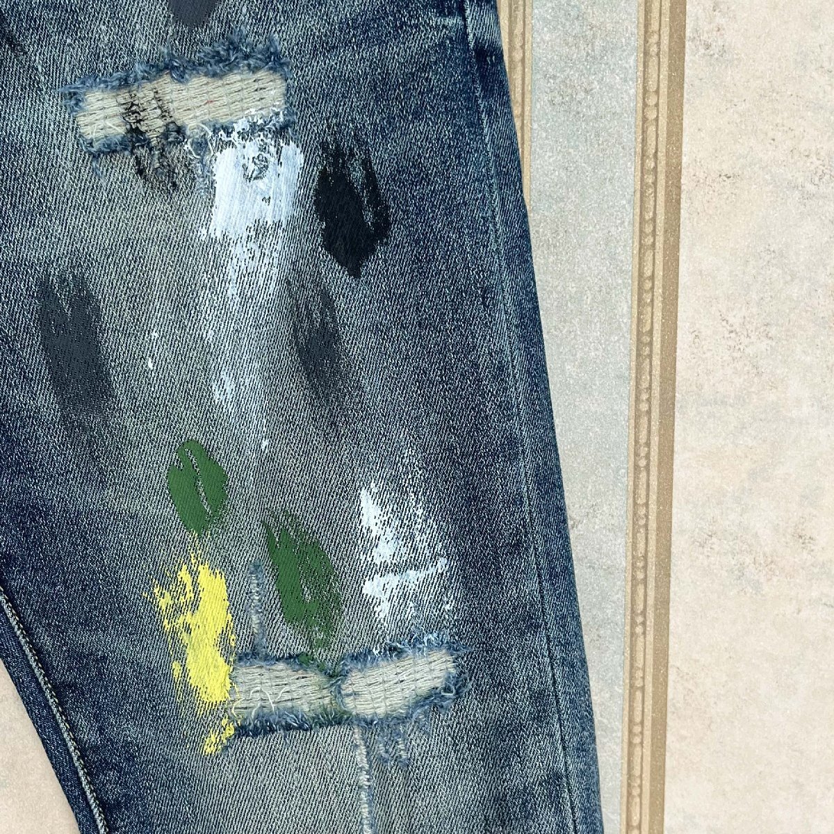 個性 定価4万 FRANKLIN MUSK・アメリカ・ニューヨーク発 デニムパンツ 綿混 上質 通気 ペイント ダメージ ロング丈 ストリート ズボン サイズ29