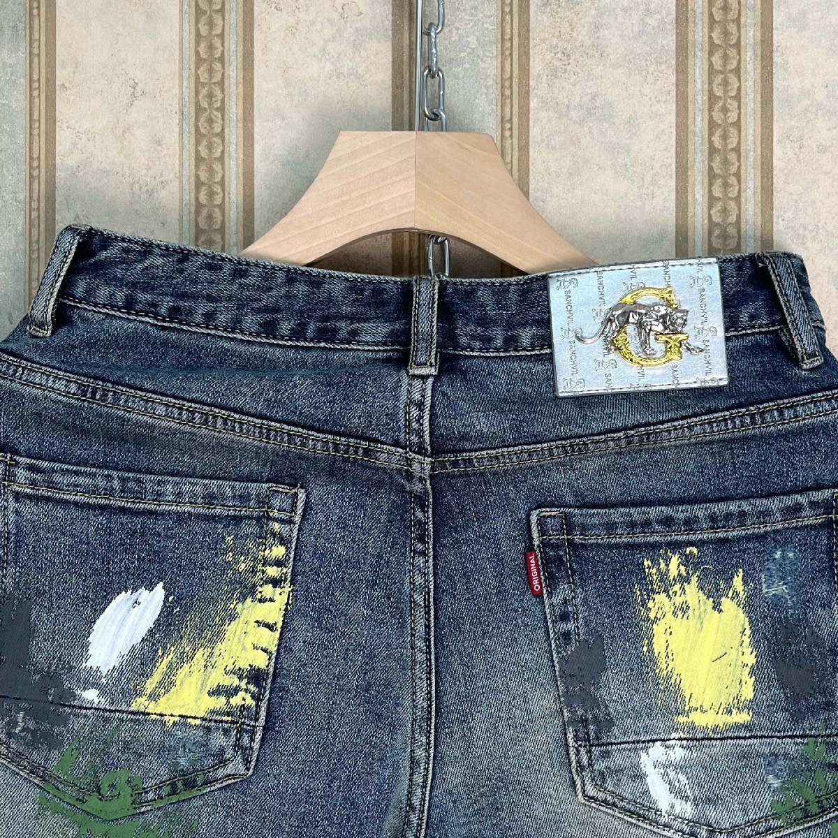 ジーンズをクールに魅せる絶妙な色落ちと、派手すぎないダメージ加工が洗練されたオシャレ感を演出。さらに、ペンキ加工がアーティスティックな雰囲気をプラスしています。両側と後ろにはスマホが入るポケットを装備し使いやすさも。ウエスト部分は、ボタン&ジップデザインなのでリラックス感も満載です!