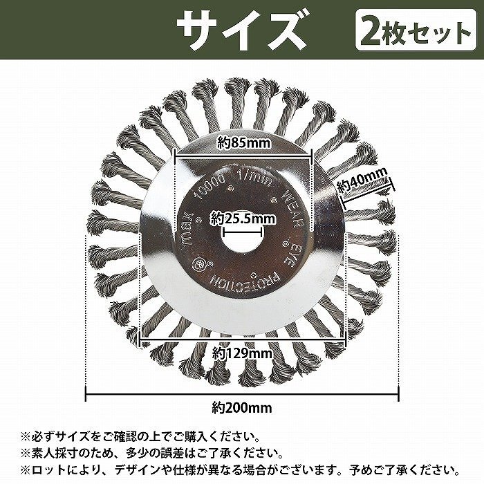 20cm 200mm 2枚セット 草刈機 替え刃 スチール ワイヤー ヘッド ブレード ブラシ チップソー 雑草 苔 草刈り機 刈払機 2個