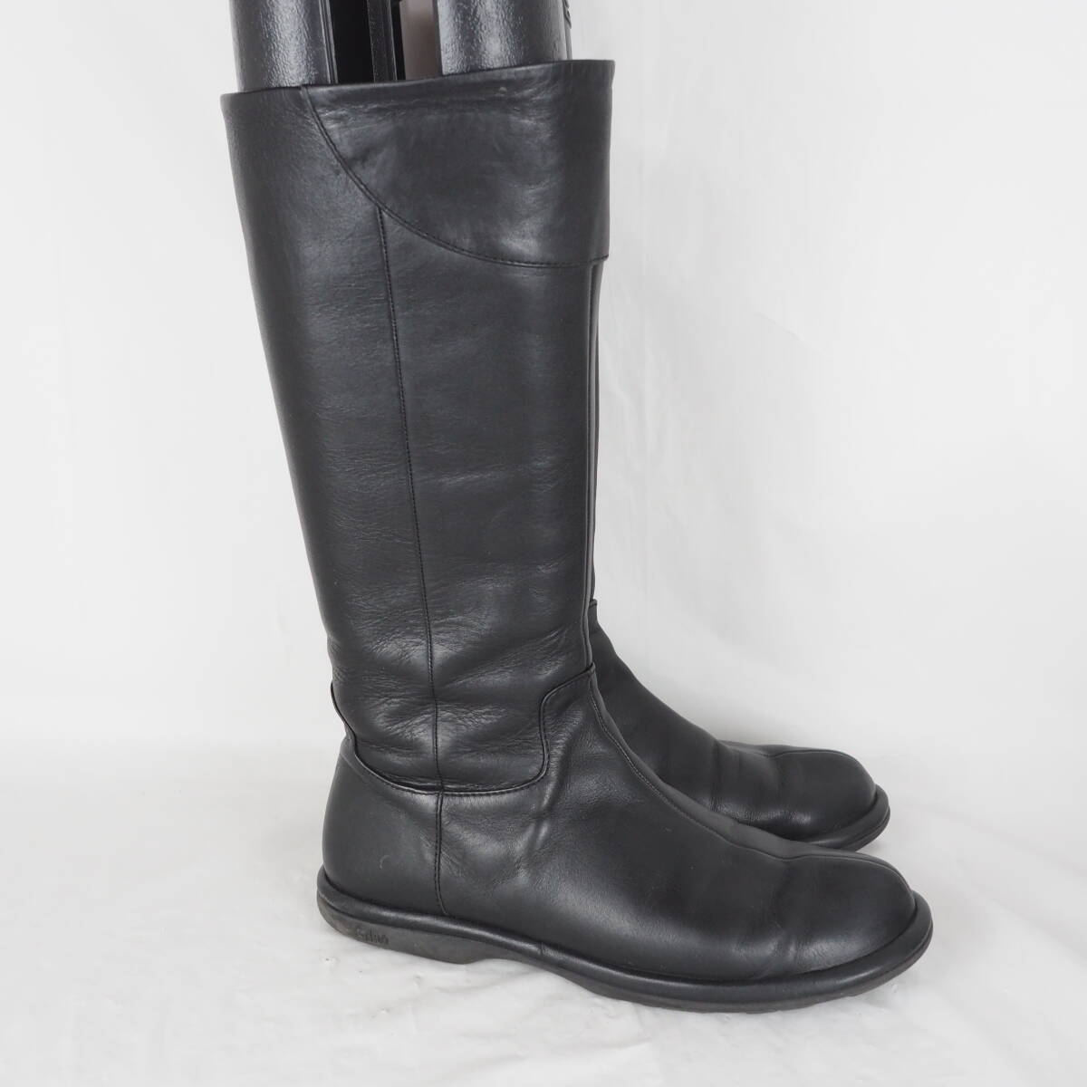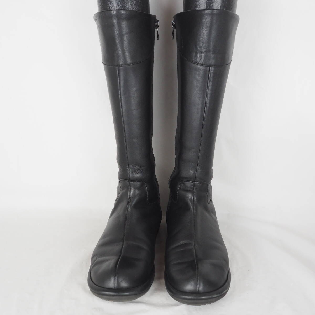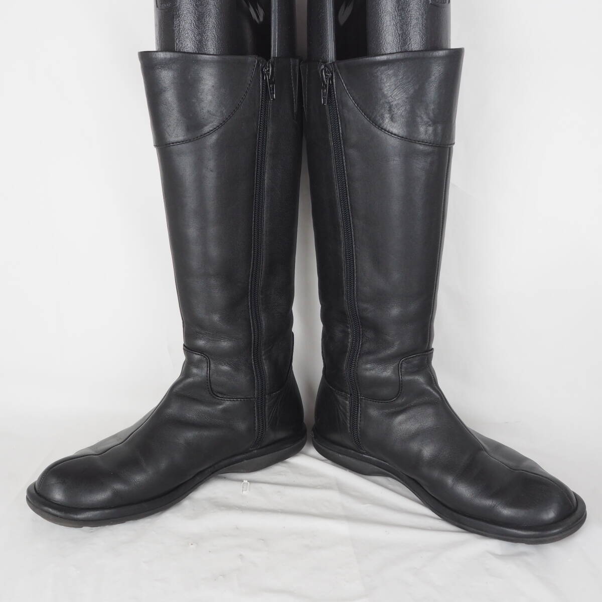 | ページをご覧いただきありがとうございます^^靴、ブーツを中心に出品しております。 しなやかなレザーが足に心地よく馴染み、快適な履き心地を叶えてくれるロングブーツです。 深みのあるブラックカラーが装いを引き締め、スタイリッシュで落ち着いた印象を添えています。 歩きやすさに配慮したソール設計で、デイリーにもお出かけにも活躍する実用的な一足です。 ☆商品詳細☆