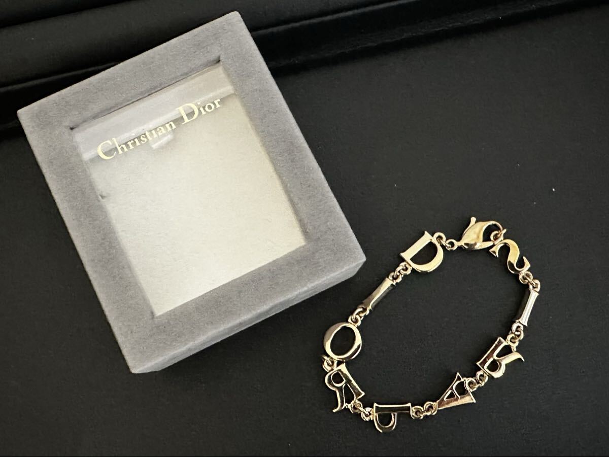 ◇Christian Dior クリスチャン ディオール ロゴ ブレスレット 約18.5cm ゴールドカラー ヴィンテージ◇