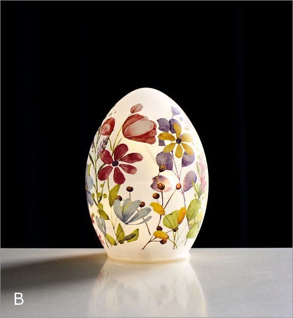 | こちらのページでは【Bタイプ】のみの販売です 卵型のすりガラスに 繊細な花々をプリントした タイマー付きの卵型LEDライト 明かりを灯すと 絵柄がふんわりと浮かびあがり まるで春の庭をのぞき込んだような 温かく穏やかな風景が広がります 火を使わず安心して使えるので ベッドサイドや玄関先など 優しいあかりがほしい場所や 大切な家族の手元供養のシーンにもオススメ 日々の時間にやさしい光を添えてくれる灯りです 商品名 : フラワーグラスランプ 商品番号 : toy8968 全体のサイズ(cm) : 直径10×高さ14 材質 : ガラス プラスチック 重量 : 135g 生産国 : 中国 ※単4電池×3本使用(電池は付属しません) ※タイマー機能付(ONから6時間後に消灯→ONから24時間後に再点灯) ※商品の特性上、本体の小傷やプリントの色ムラ、本体のわずかなガタ付つきや傾き等はご容赦ください ※電球が一部に寄っている場合があります ※ディスプレイによる色の違いはご了承下さい |