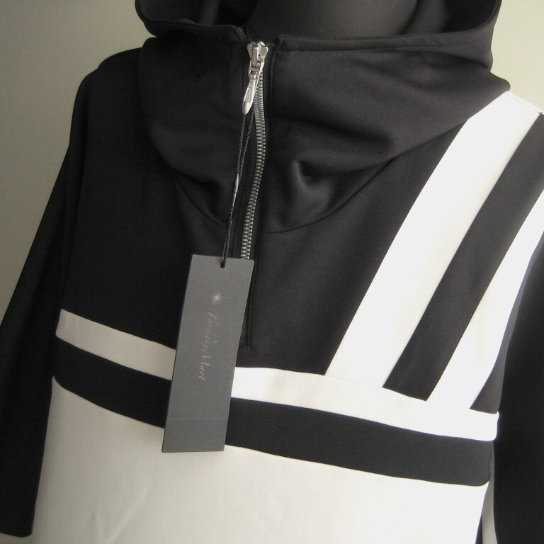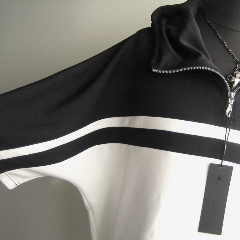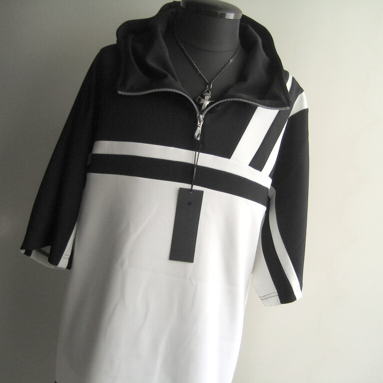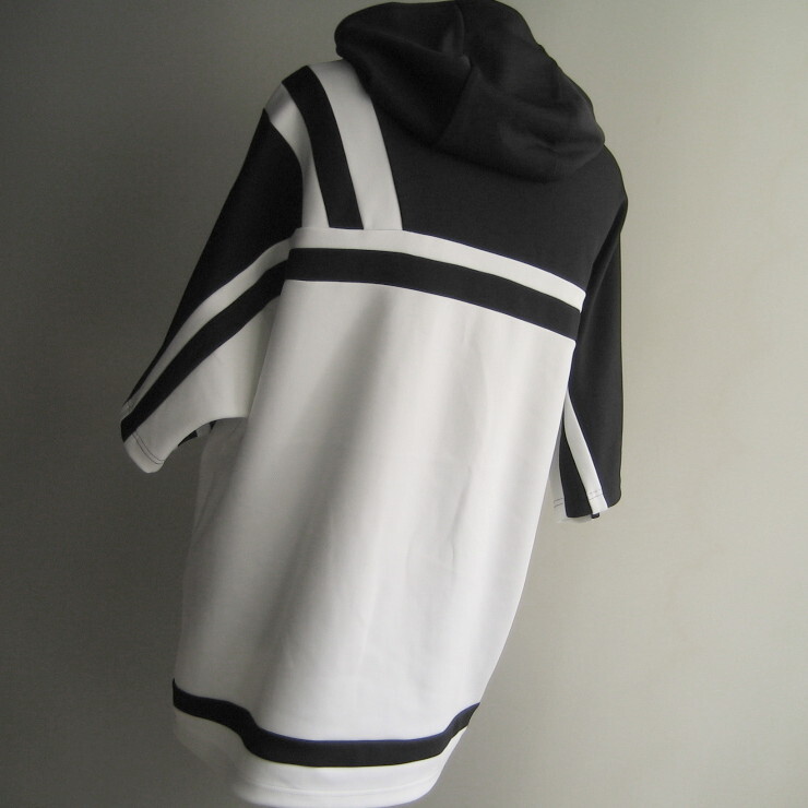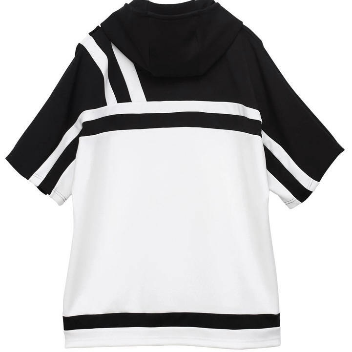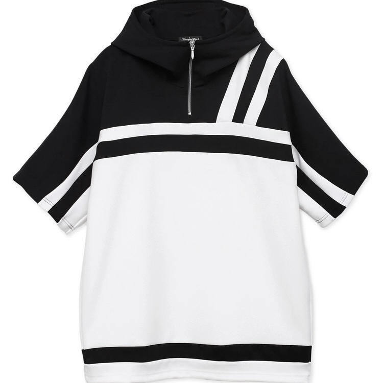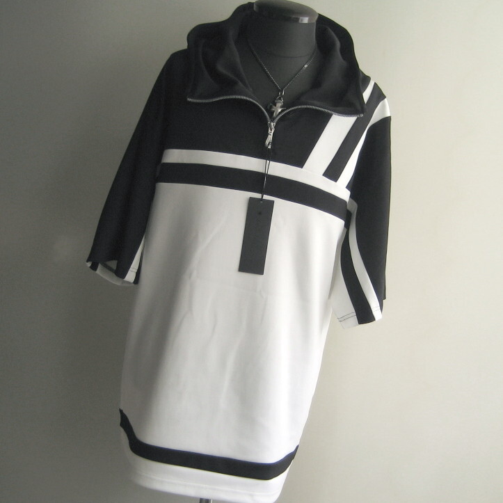 2.2万 新品 L トルネードマート バイカラーセンターZIPフーディ半袖 ホワイト×ブラック サンプル 718