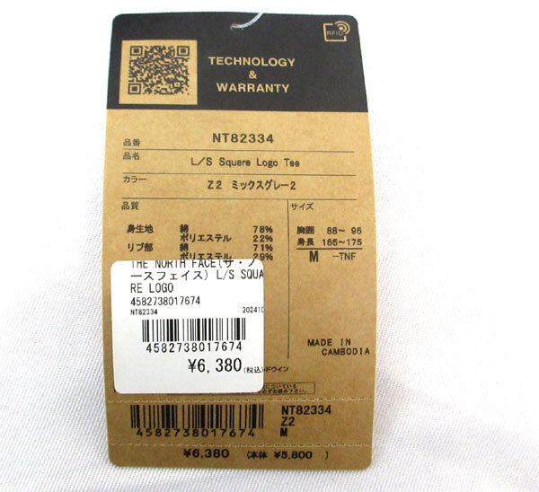 | メンズ ノースフェイス ロングスリーブスクエアロゴティー(NT82334) M 6380円相当 | |