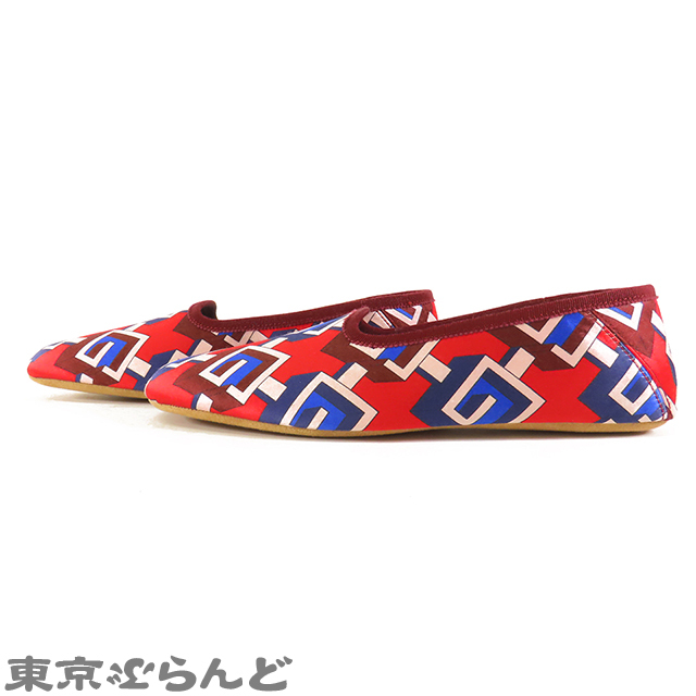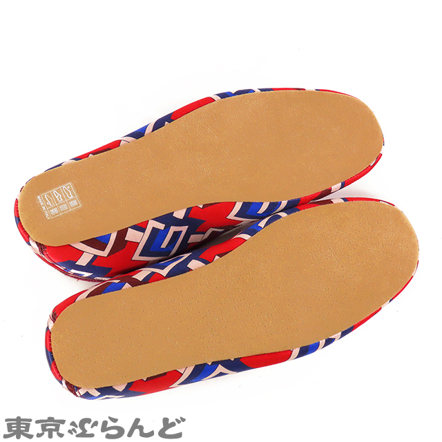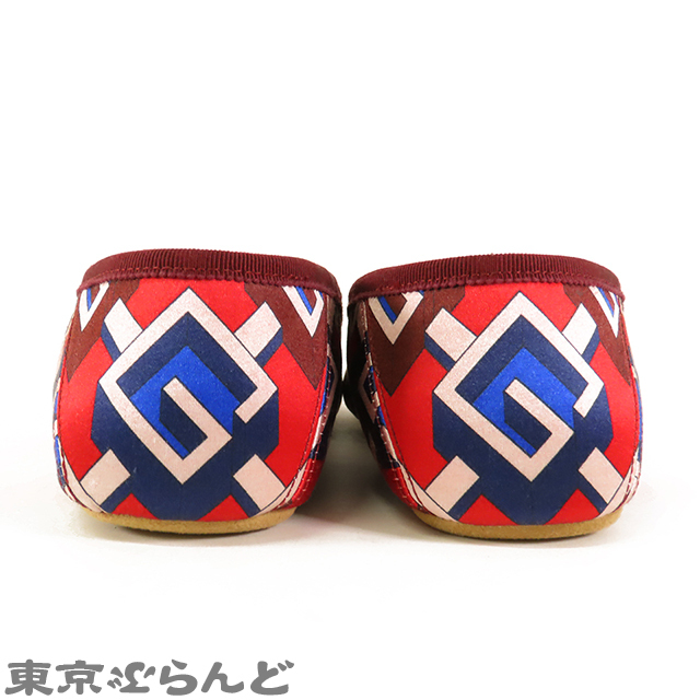 101802154 グッチ GUCCI ジオメトリックG プリント ルームシューズ レッド系 ビスコース シルク スリッポン 36 靴 レディース 展示未使用品