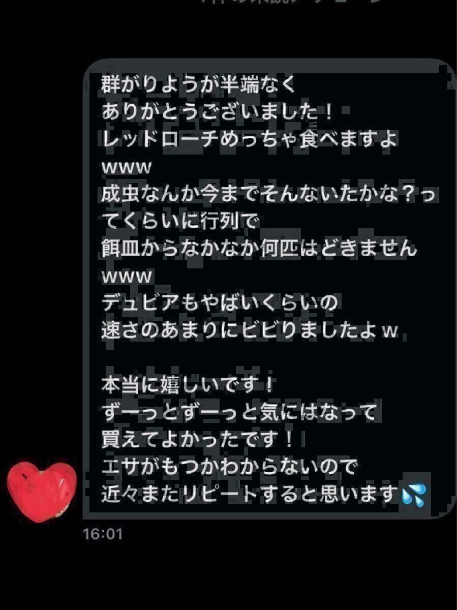 わが家では飼育しておりませんが、購入者様からのお声で、レッドローチにも非常に有効的だと判明いたしました!
