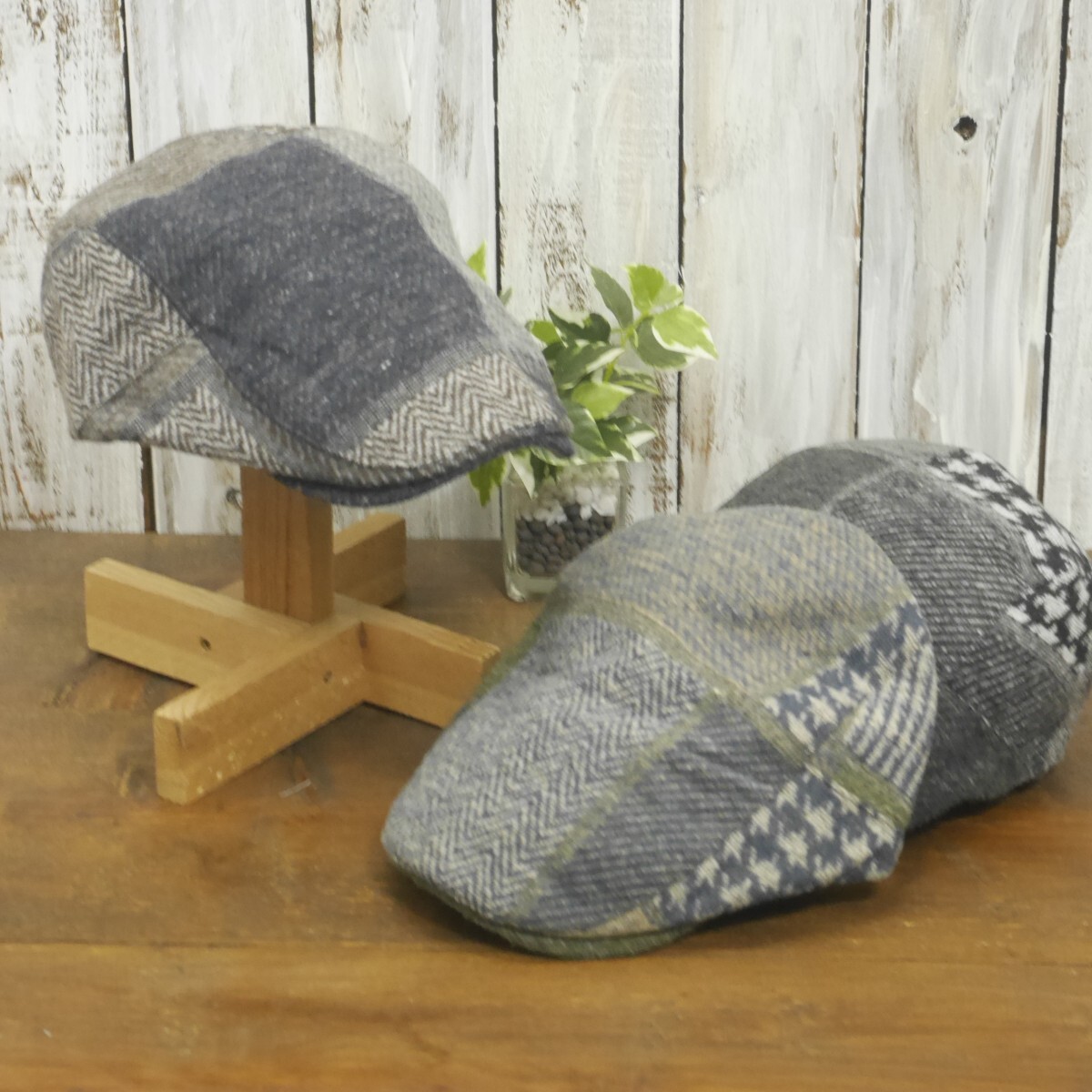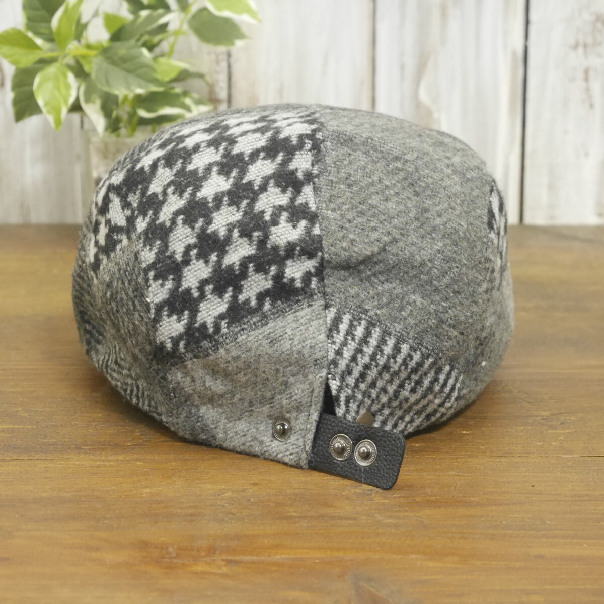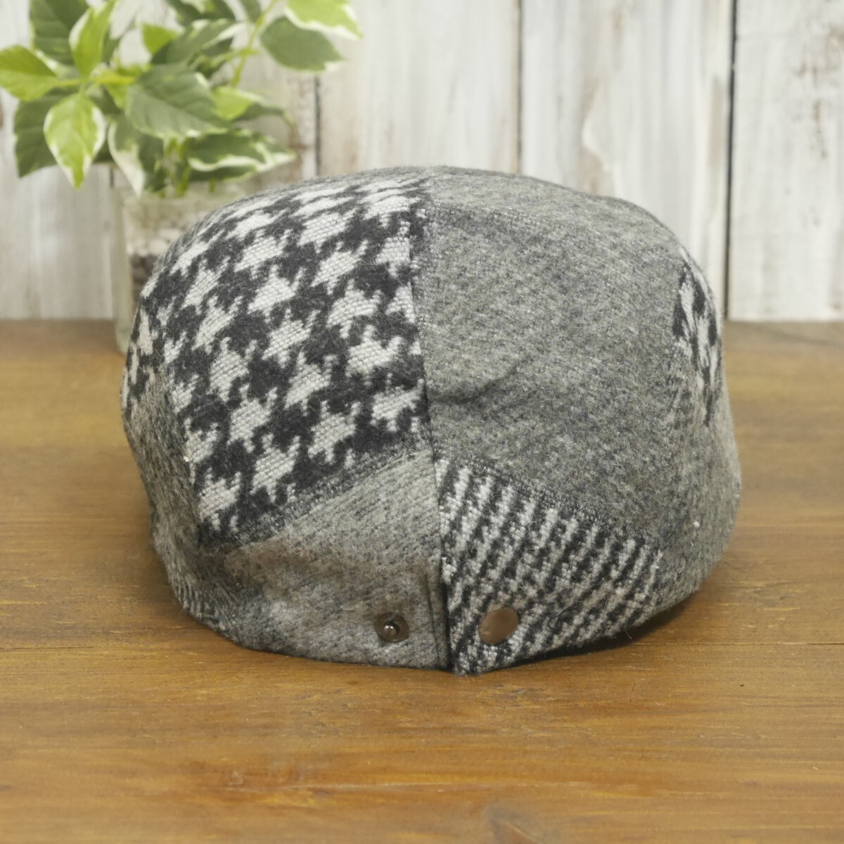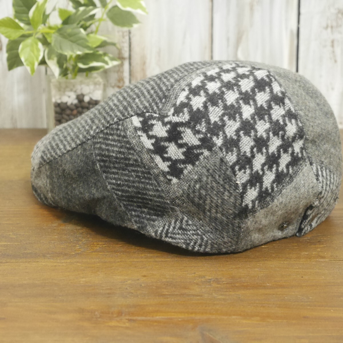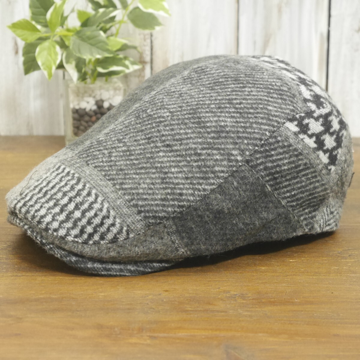ウール ハンチング つぎはぎ パッチワーク グレー ブラック シンプル サイズ調整可 送料\450 男女兼用