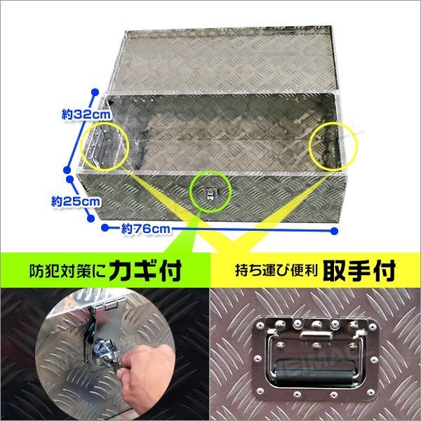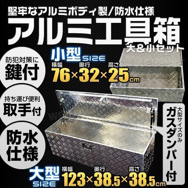 | 高い耐久性をもつ頑丈なアルミ工具箱です。 大切な工具や道具、電動器具を安心して保管できます。 持ち運びに便利な取っ手が両側に付いています。 大小セットでお得です!! 【仕様】 (大型) 寸法:幅1230×奥行385×高さ385mm 重量:約13kg 材質:アルミ 防水構造・ロック付 (小型) 寸法:幅760×奥行320×高さ250mm 重量:5.4Kg 材質:アルミ 防水構造・ロック付 工具 アルミ 物置 工具箱 道具箱 保管箱 ツールボックス 工具ボックス アルミボックス 荷台箱? | ◇入荷状況により細かな仕様変更がございます。その場合、写真ではなく現物が重視されますので神経質な方は入札をご遠慮ください。 ◇当商品は海外製品になりますので、細かいキズ、ネジのゆるみなどがある場合がありますが、返品・交換対象とはなりません。神経質な方のご入札はご遠慮ください。 ◇商品内容はあくまでも出品概要に基づきますのでご注意ください。 ◇本商品を使用した際に発生したトラブル、事故につきまして、当社は一切の責任を負いかねます。 ◇メーカーではないため、専門的なご質問にはお答えできません。 ◇検品確認済みですので破損以外の交換には応じられません。商品到着時にはその場で開封、破損の有無を確認し、破損の場合には受け取らないか配送業者に申し出てください。 ◇加工および一度装着した商品の返品・交換には対応できません。事前の確認をお願いします。 また、商品の取付にかかわる費用等の弁済には対応できません。 |