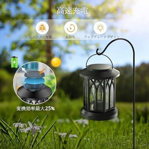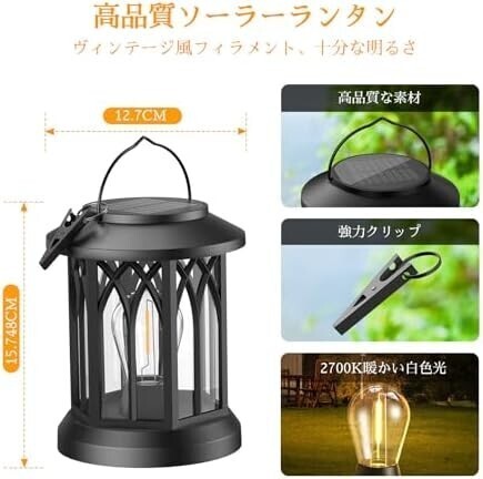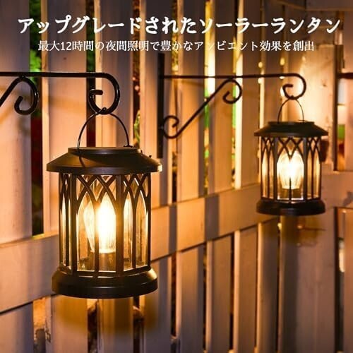 Letmy ソーラーランタン ソーラーライト 屋外 防水 ガーデンライト おしゃれ ledランタン LED 電球色 夜明け 自動オン/オフ 庭、花壇、パティオ、玄関、ベランダ、駐車場、歩道などに適用 屋外 照明 ガーデニング イルミネーション 母の日ギフト 2個セット 商品詳細 【レトロデザイン& ソーラーランタン】:本屋外ランタンのデザインは伝統と現代を融合して、和傘の骨組技術を応用した耐衝撃構造で、歴史的意匠を現代的解釈で再現したレトロモダンな佇まい。