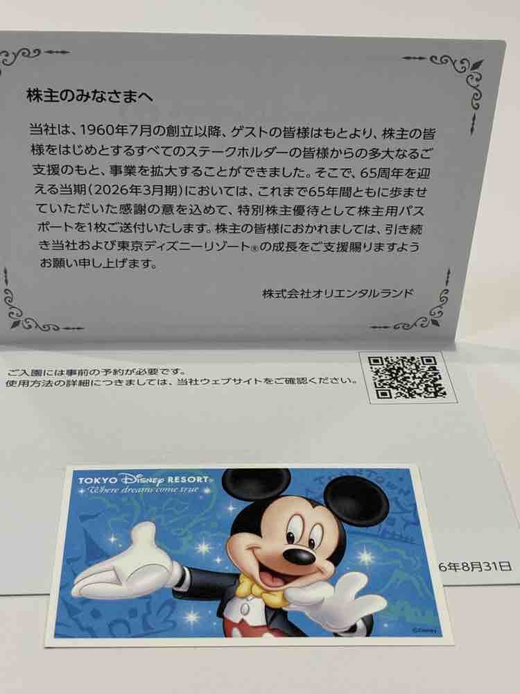 (OH6307)オリエンタルランド特別株主優待券1枚【有効期限2026.8.31】 東京ディズニーリゾート