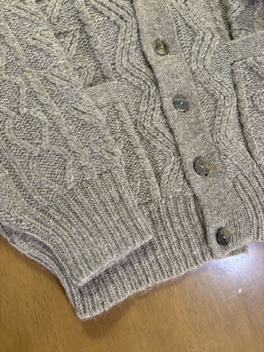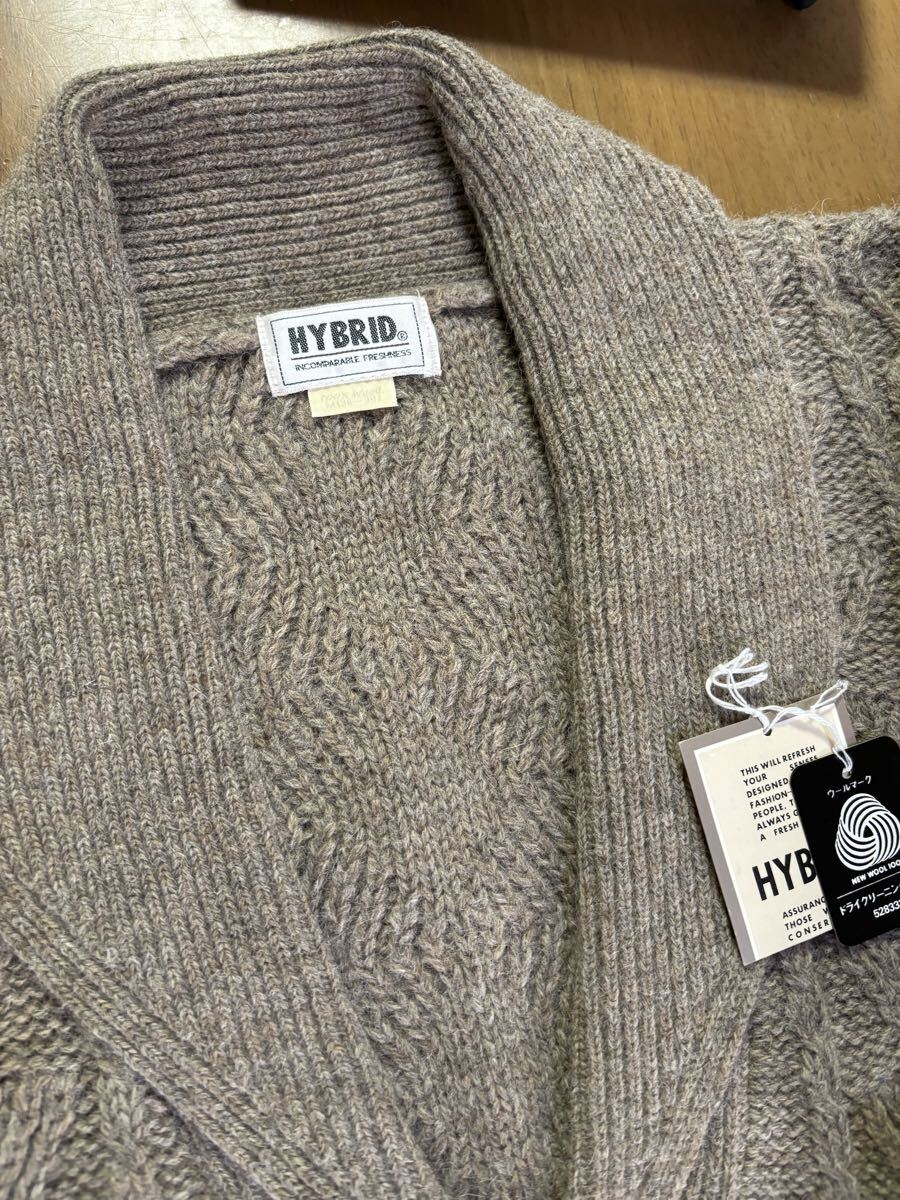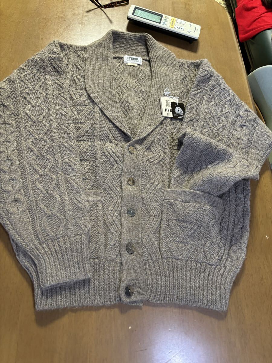 HYBRID Traditional サイズ36-38 毛100% 緑灰ヘチマ襟バルキーカーディガン