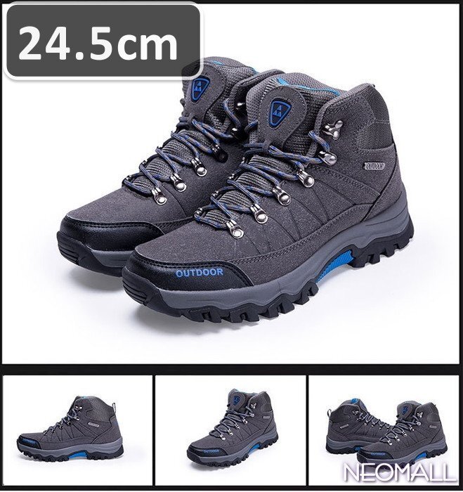 メンズ トレッキングシューズ グレー 24.5cm【858】ハイカット ハイキングシューズ 防滑 耐磨耗 衝撃吸収 レディース 男女兼用
