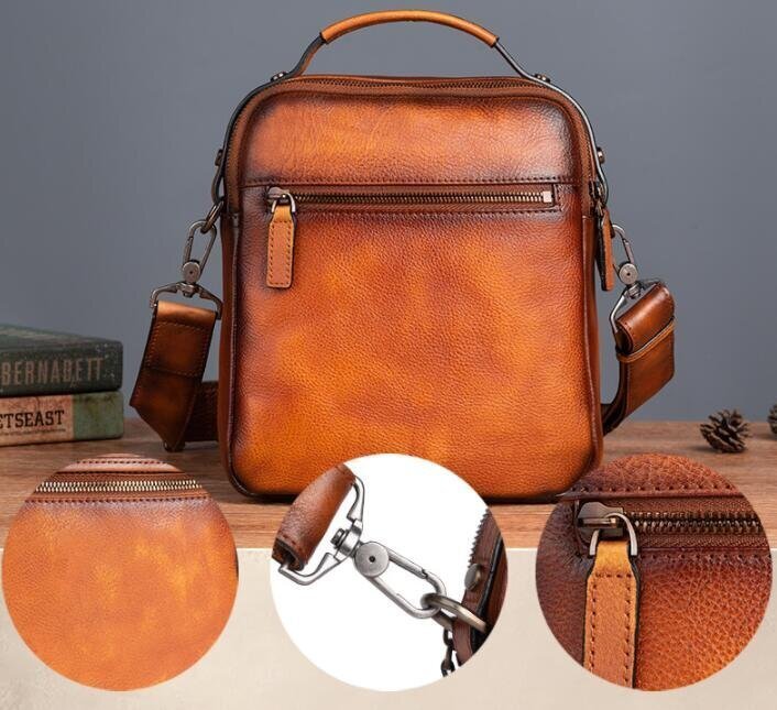 本革 ショルダーバッグ メンズ アンティーク 斜め掛け鞄 メッセンジャーバッグ 2室 ヌメ革 本革 牛革 レザー 縦型 iPad収納