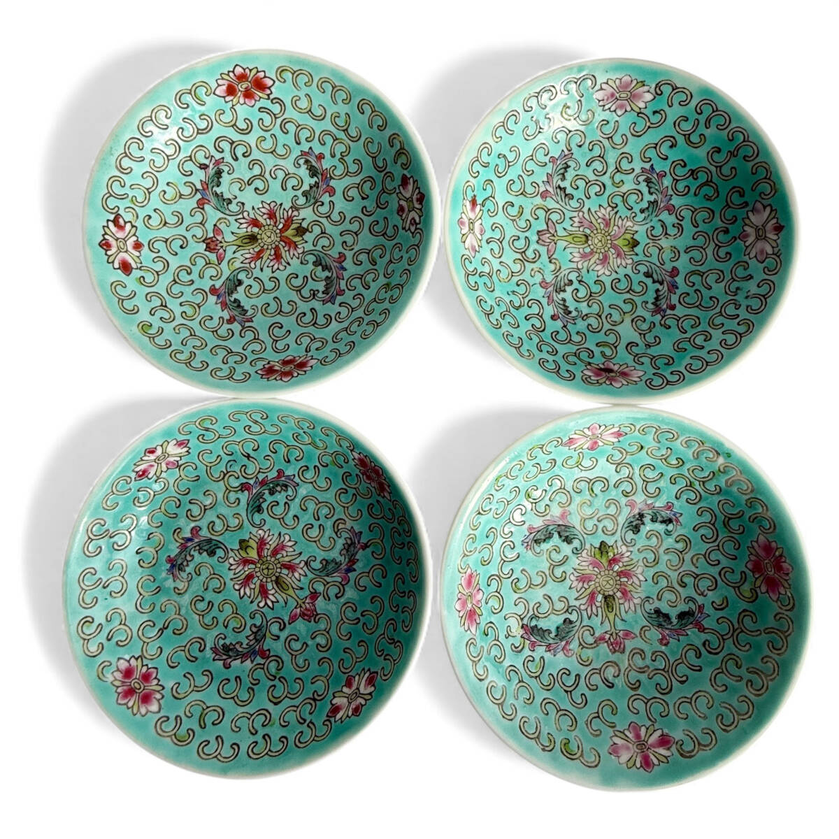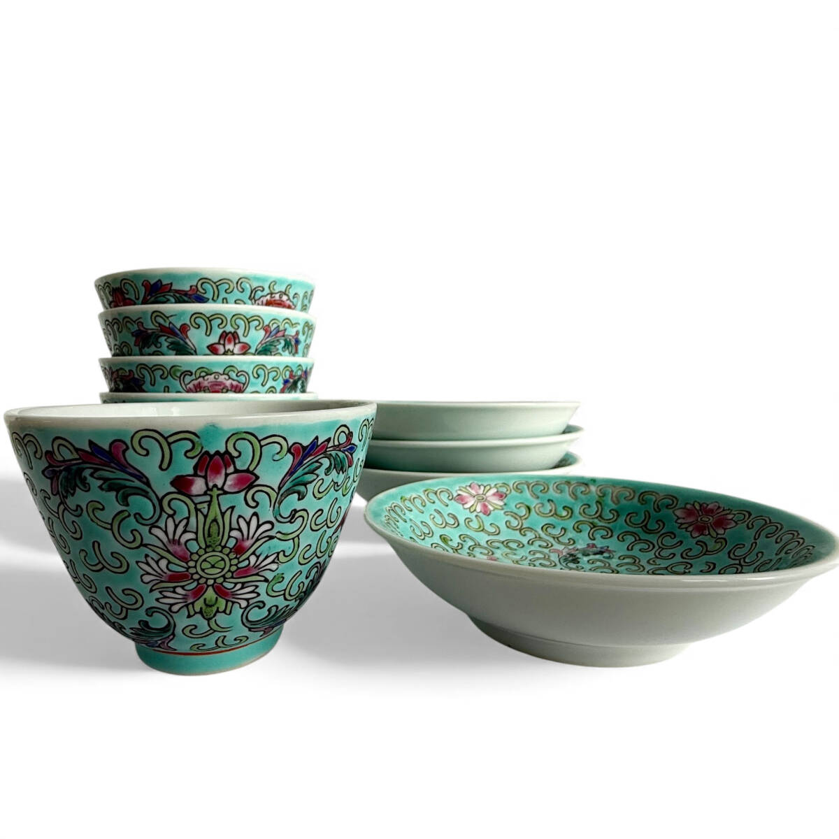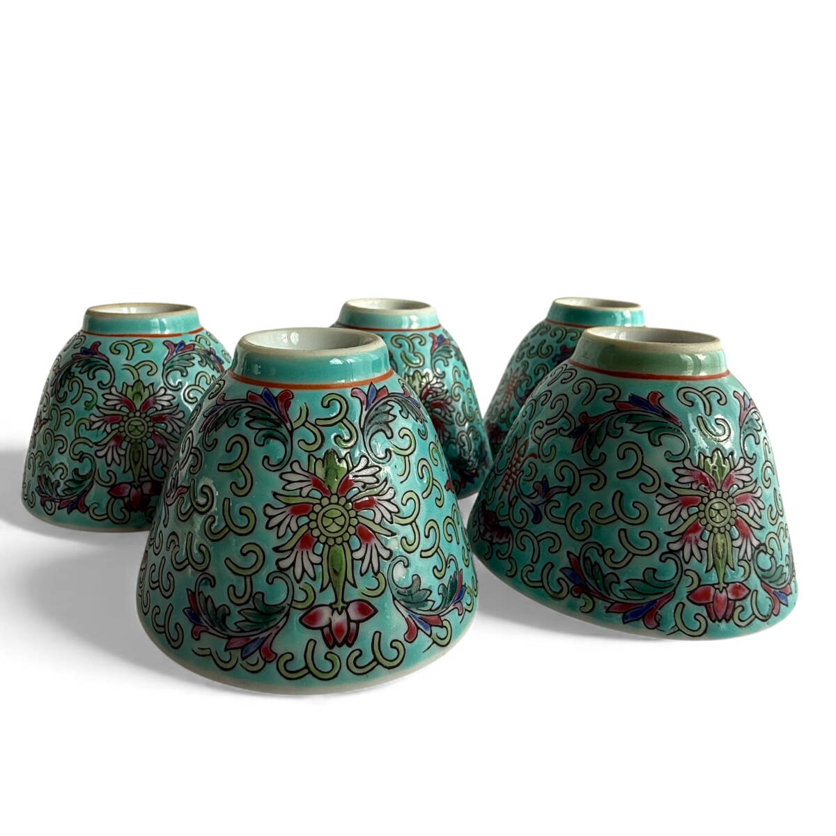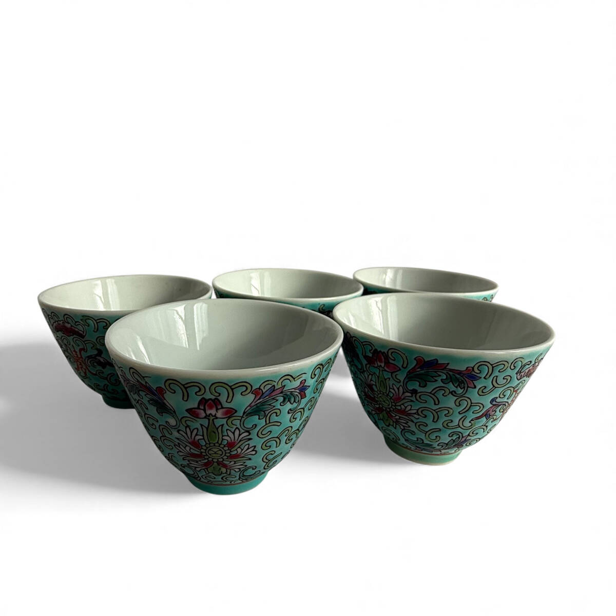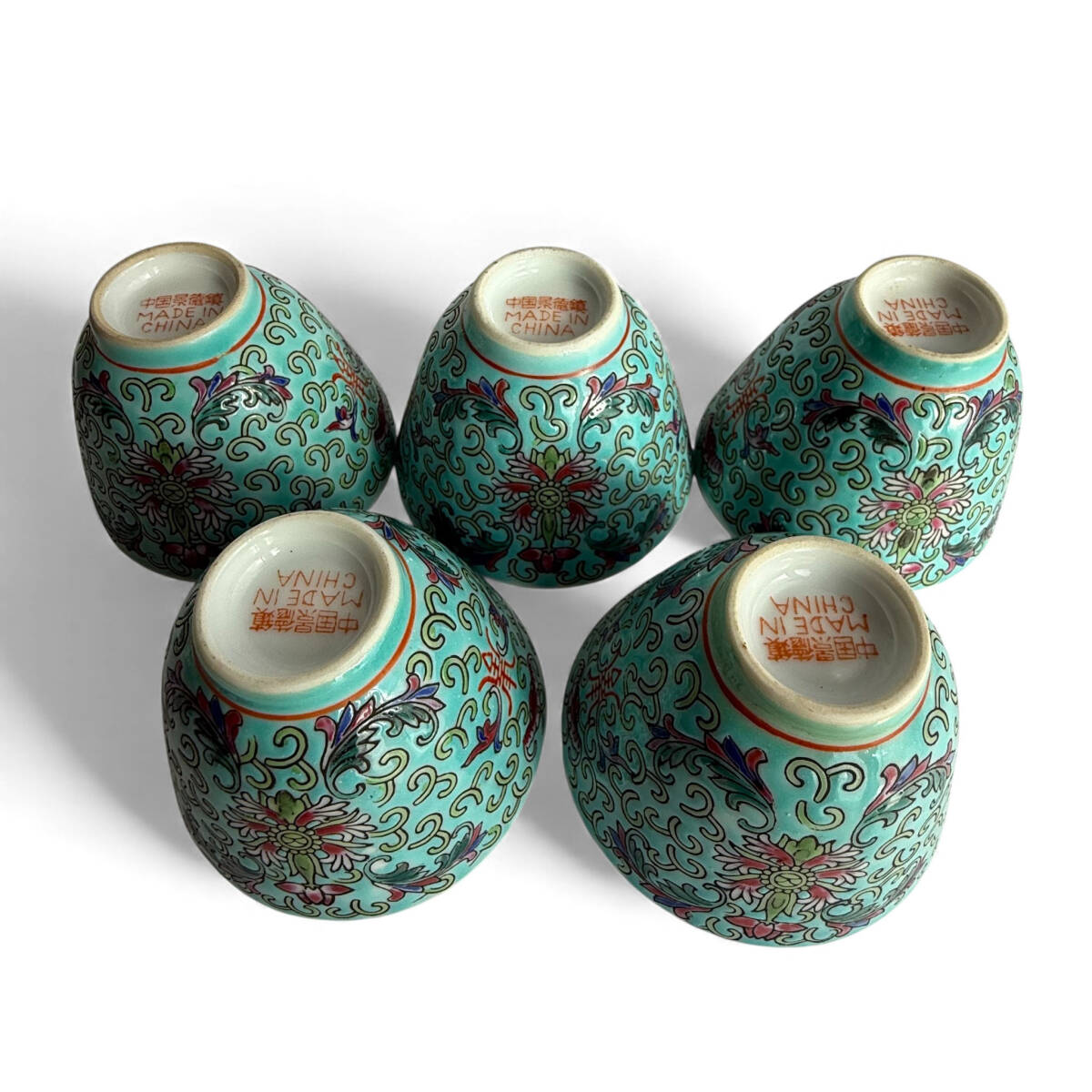 M7-1818 中国 景徳鎮 茶器セット 色絵磁器 煎茶道具 煎茶碗 5客 小皿4枚 食器