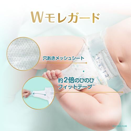・【NEW!クッション素材 かつてない**ふかふか心地】 パンパース史上最高**のやわらかさ 進化したWレイヤー構造により、極上のやわらかさを実現。 **当社国内向けテープ製品内比較。本製品販売開始時点において
