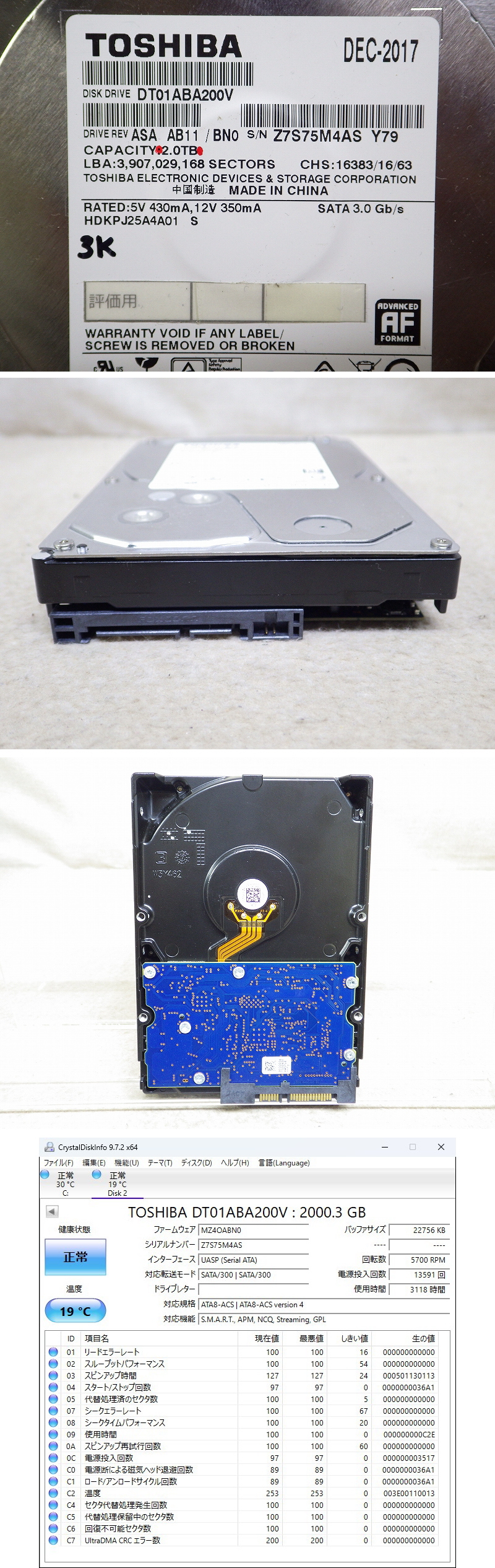 | 商品名 | Kネま2343 東芝/TOSHIBA 3.5インチ SATA 内蔵HDD 2TB DT01ABA200V パソコン周辺機器 PCパーツ ハードディスク |
