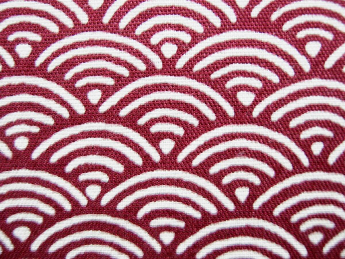 木綿の半衿【和柄/青海波 赤紫×薄べーじゅ】はぎれ