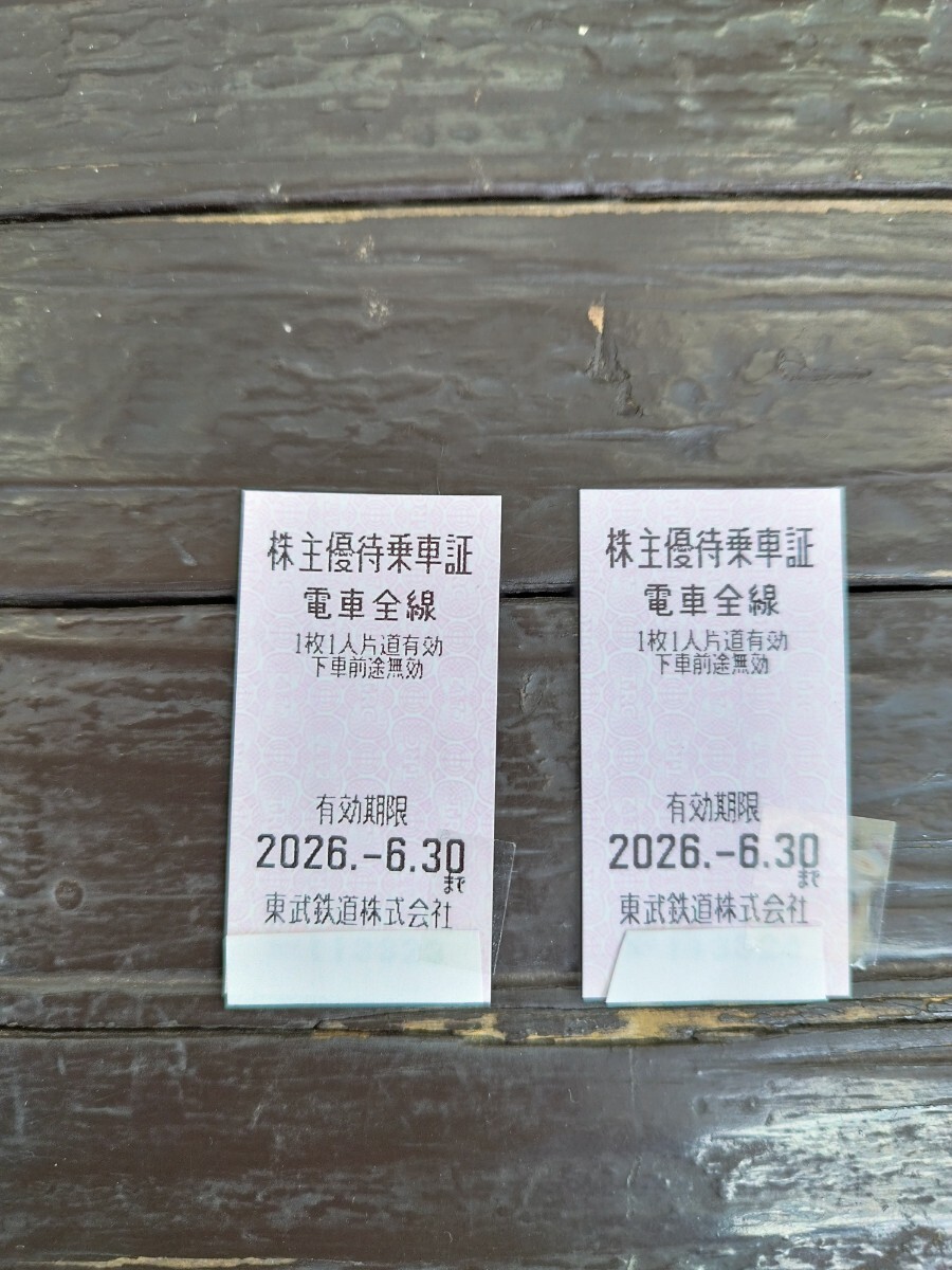 東武鉄道 株主優待乗車証2026/6/30 2枚セット 回数券型