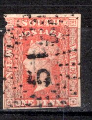 ◆055古い英領N/S/W 1856年 QV 1p 無目打ち $27 ① ◆ | |||