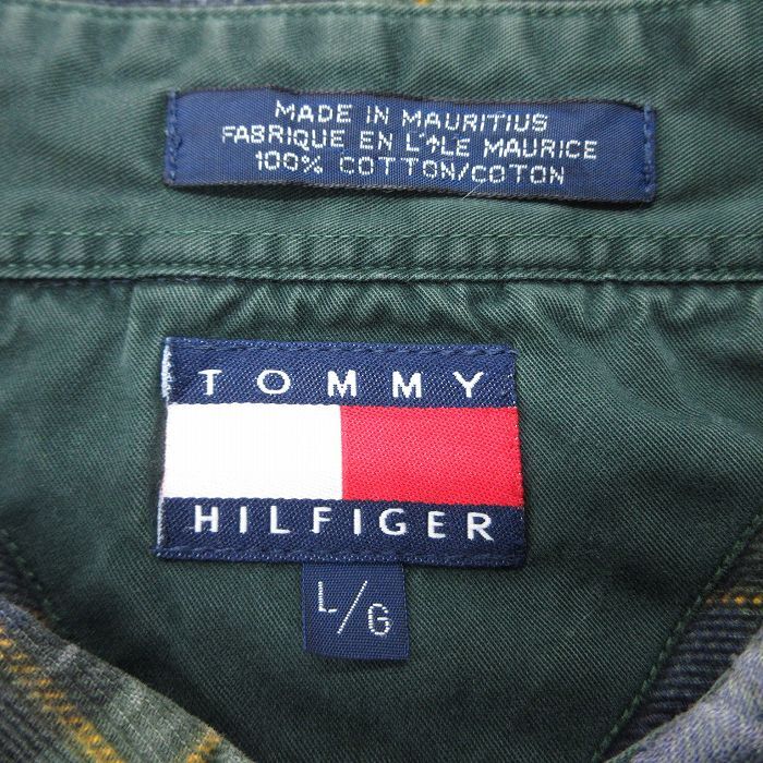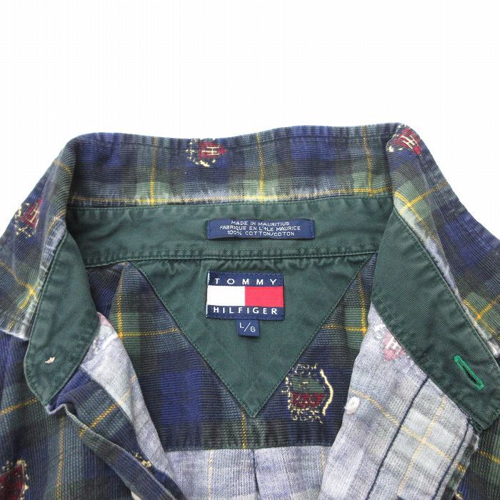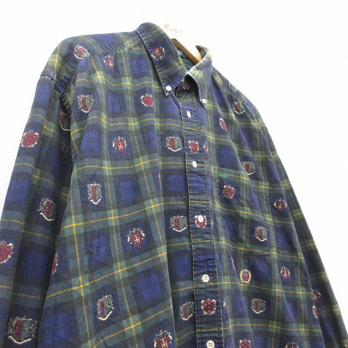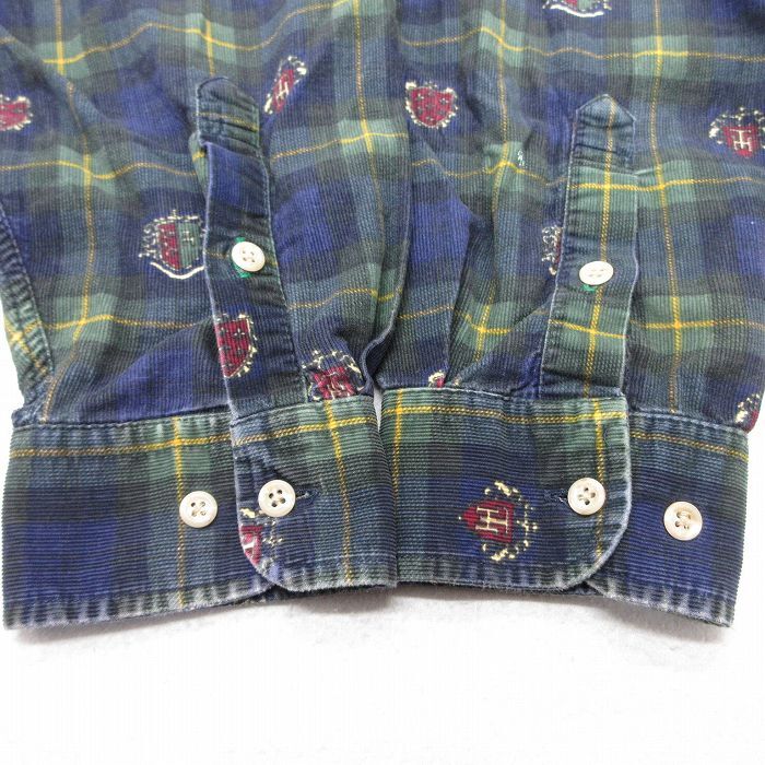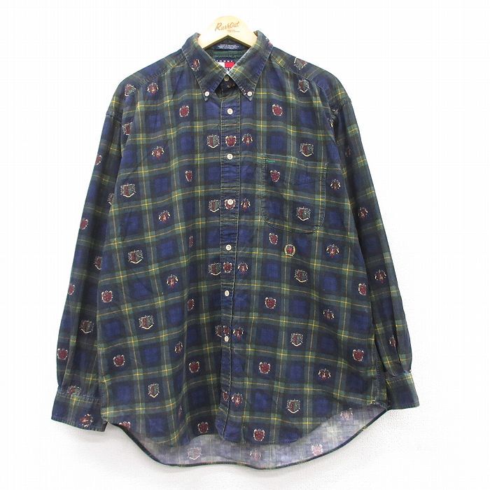 【商品名】 XL★古着 トミーヒルフィガー 長袖 ブランド シャツ メンズ 90年代 90s コーデュロイ 総柄 大きいサイズ コットン ボタンダウン 紺他 チェック【spe】