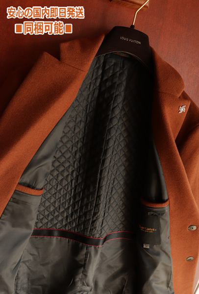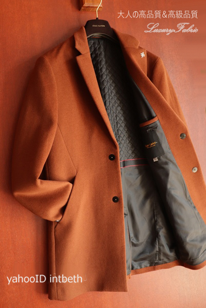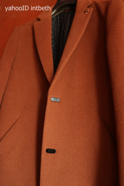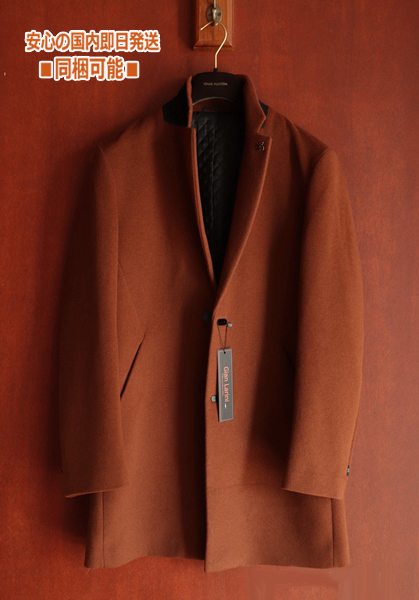 新品■G.LARINI茶52 ウール チェスターコート L メンズ アースカラー 2スナップ WOOL テーラード コート ミドル丈 美シルエット 細身