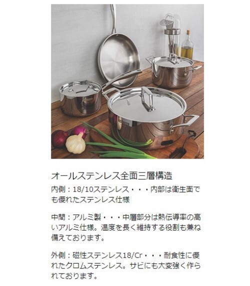 ステンレス+アルミ+ステンレスの三層構造による保温性と熱伝導の良さという特性そのままに、よりご家庭での使いやすさを追求しました。