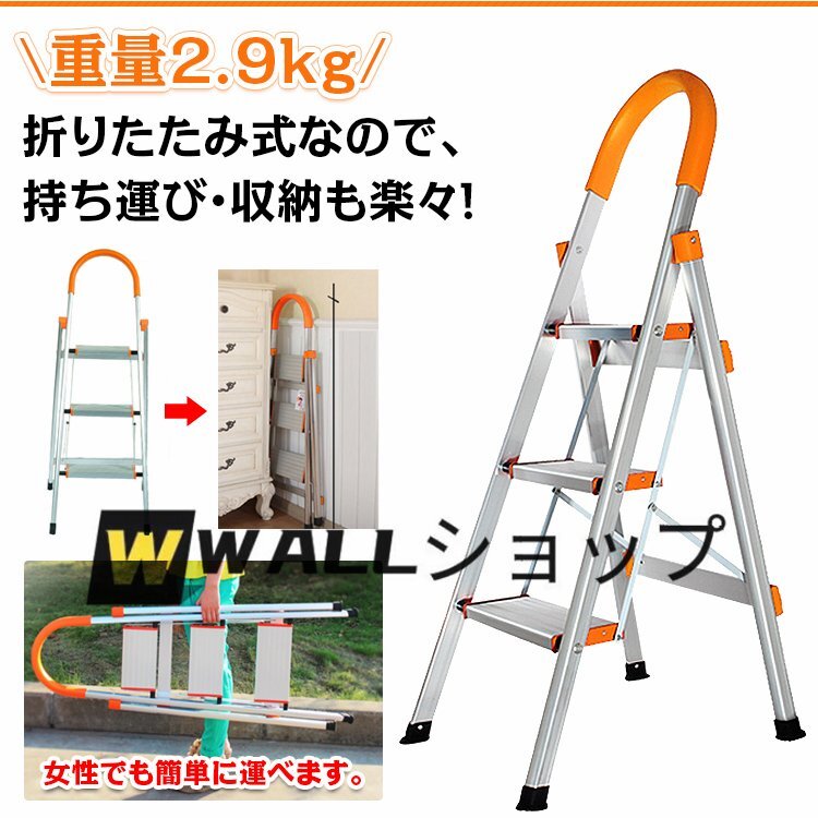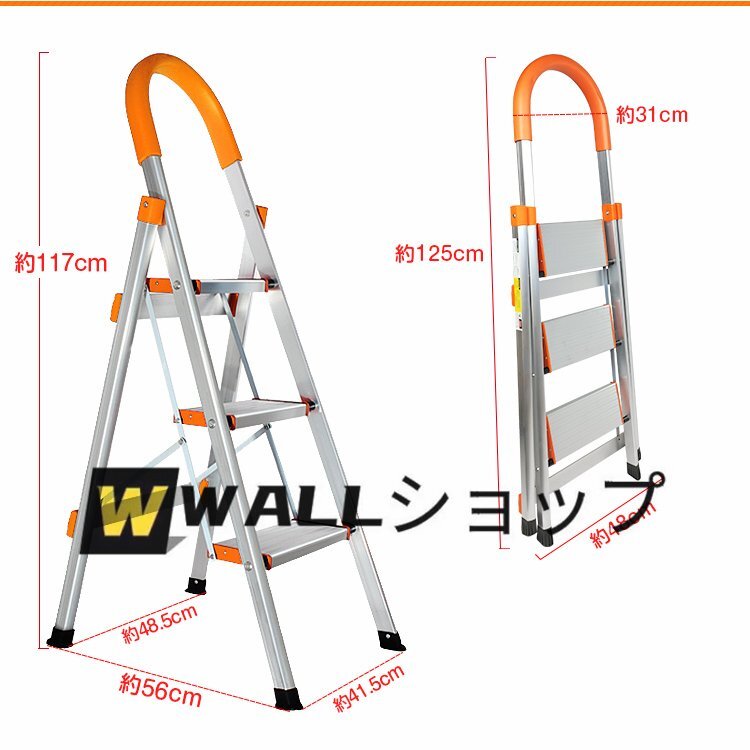 強くお勧め★脚立 アルミ 足場 3段 折りたたみ 軽量 踏み台 作業台 ステップ ラダー はしご 雪下ろし 洗車 清掃 大掃除 持ち運び