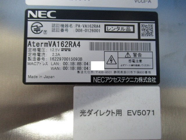 ◇ Aterm VA162RA4 ×1 NECアクセステクニカ PA-VA162RA4 光ダイレクト用EV5071 商品の通電確認のみしております 弊社では設定などのサポートは一切できませんのでご了承ください | ||
