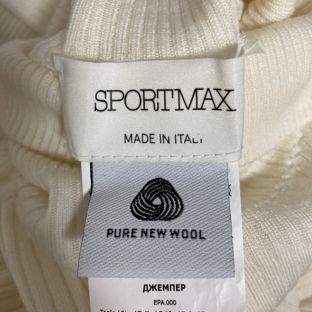 美品 SPORTMAX スポーツマックス マックスマーラ タートルネック ウール リブニット カットソー サイズS ホワイト