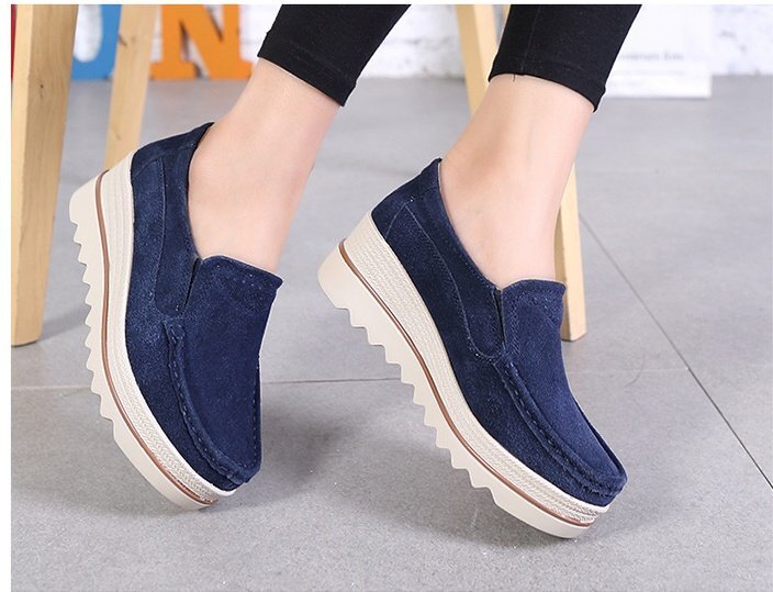スニーカー レディース スリッポン 厚底 ヒール スリッポン シューズ 秋 レディースシューズ ローカット フラット ネイビー24.5CM