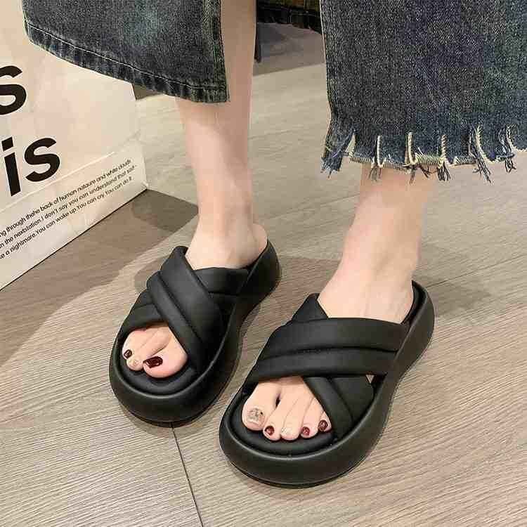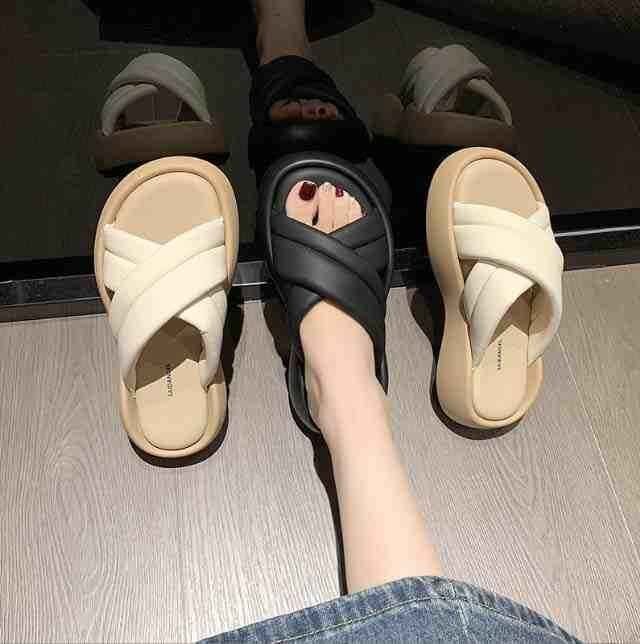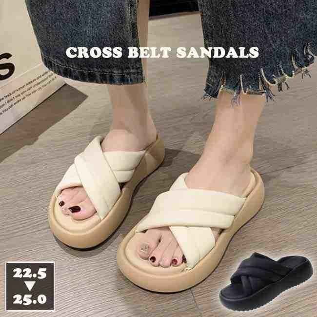 ・柔らかく足を包み込んでくれる太めのクロスベルト。