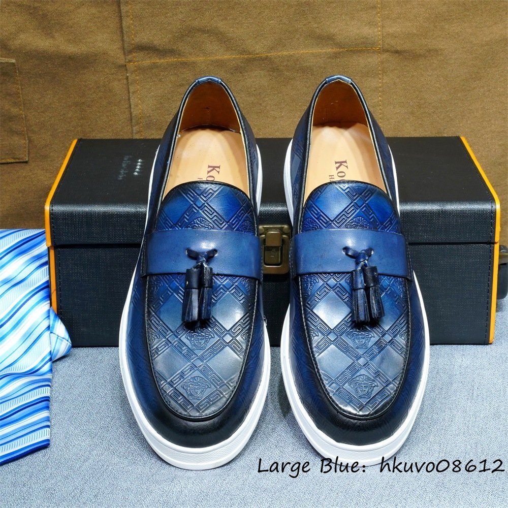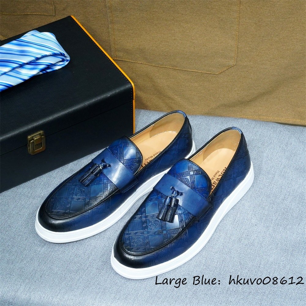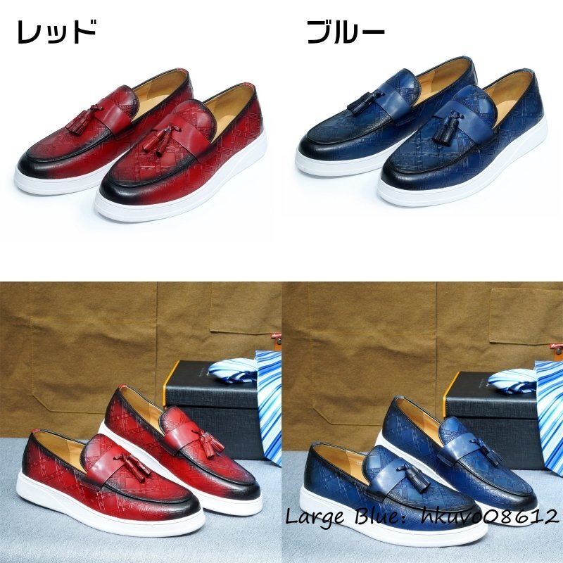 最高級◆定価9万 ローファー スリッポン メンズ 職人手作り スニーカー 本革レザーシューズ ドライビング 牛革 革靴 紳士靴 ブルー 25.5cm
