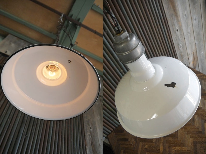 | 商品説明 岡山STAGEより出品します。アメリカで買い付けたアンティークのホーローシェード吊り下げランプです。色は希少なミルクカラーでシンプルなデザインが魅力です。消灯時にも存在感がありますのでインテリアのアクセントにお勧めです。電球は付属しませんが市販のE26mm口径の一般的なタイプですのでご用意ください。状態ですが経年による金属劣化や錆、小傷や汚れ、くすみ、擦れ、ホーローの欠け、塗料の付着、多少の歪み、凹み等はございますが雰囲気を損なうようなダメージはなくアンティークならではの良い状態かと思います。あくまでアンティークになりますのでご理解いただける方のご購入をよろしくお願い致します。 サイズ 高さ約31cm、直径約36cmです。 予定発送方法 保障の利く佐川急便の元払い140cmサイズ料金で行います。 コメント コンセント式ですので別途735円でシーリング式への交換と長さ調節もいたしますのでお気軽にご相談ください。店頭でも販売しております。タッチの差で売り切れた場合はご了承ください。よろしくお願い致します。(現状チェーンは約80cmです。切り縮めは無料、延長の場合は要相談)■落札後の連絡及びご質問の返答は基本的に午前10時~午後6時までとさせて頂きます。毎週水、木曜日、年末年始や時間外でのご連絡は休み明け及び翌日のご連絡となりますので予めご了承下さい。 STAGEホームページ https://stage-stage.ocnk.net// |