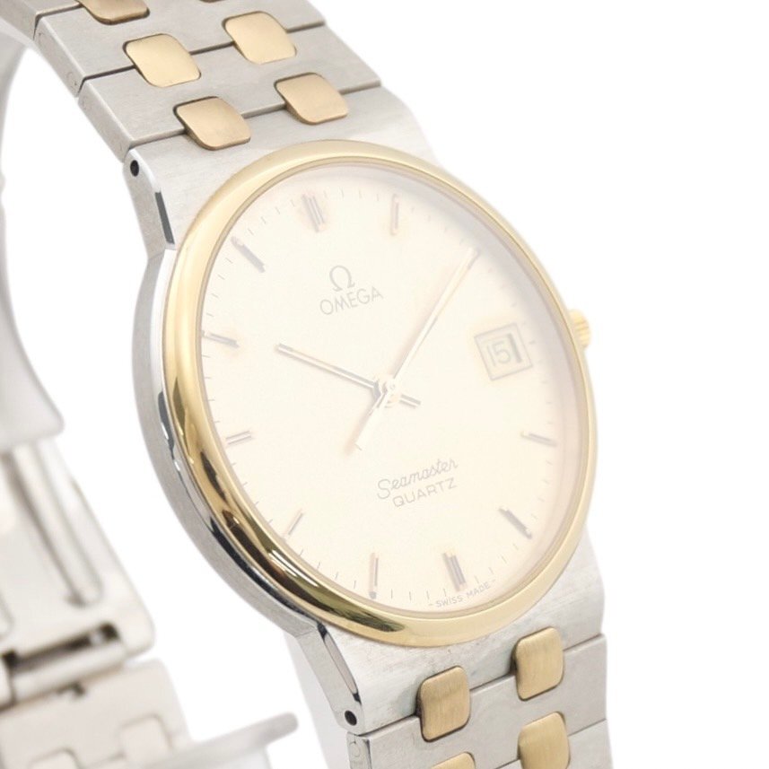 1円スタート OMEGA オメガ Seamaster シーマスター 1418/070 デイト クォーツ QZ ラウンド 3針 ゴールド文字盤 メンズ 腕時計 動作未確認